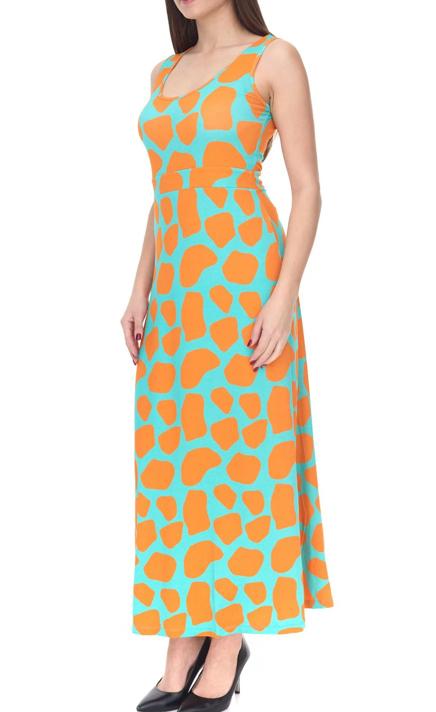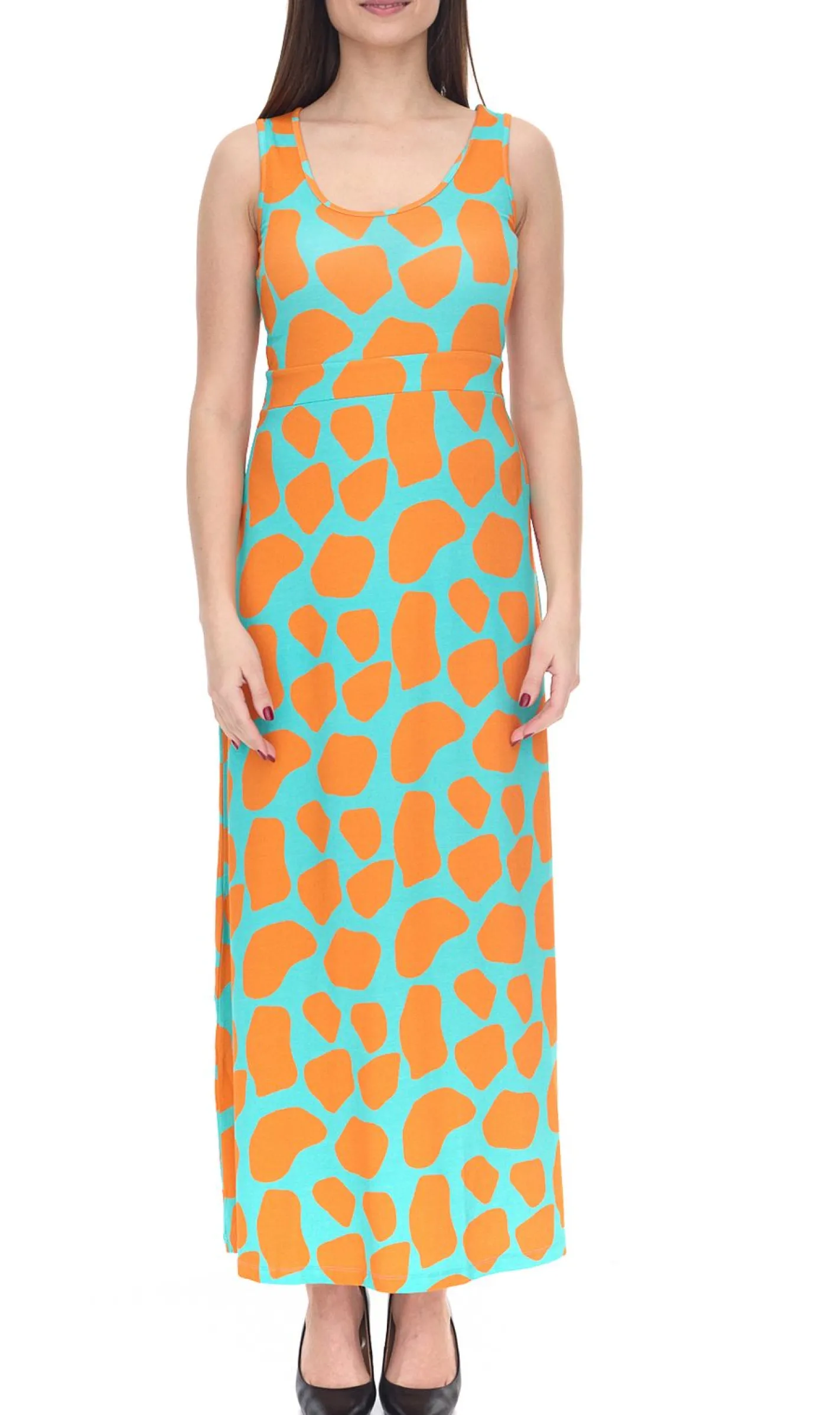 Aniston CASUAL Damen Jersey-Kleid mit farbenfrohen Druck Maxi-Kleid Türkis/Orange