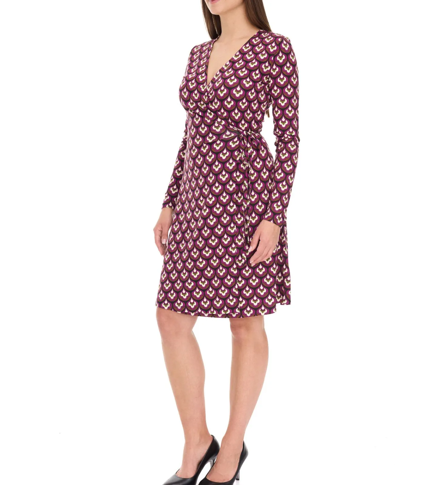 Aniston Casuals Damen Sommer-Kleid stylisches Langarm-Kleid 3172 95293142 Lila/Braun/Weiß