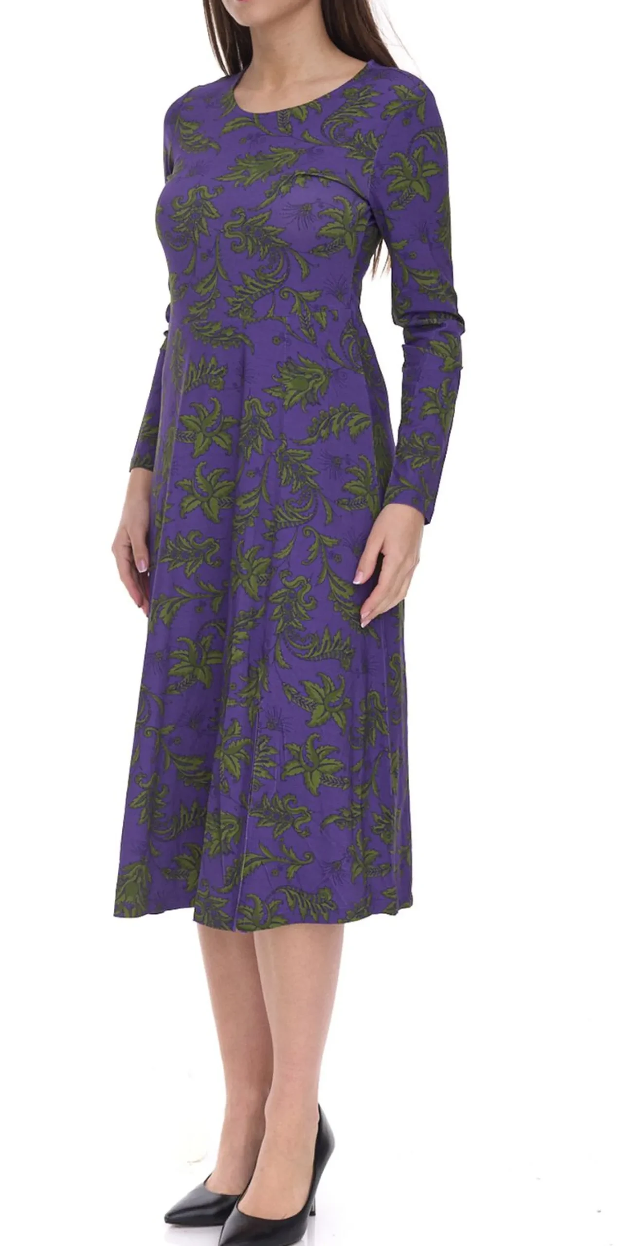 Aniston Damen Maschenkleid mit Floralemmuster Langarm 41876054 Lila/Grün