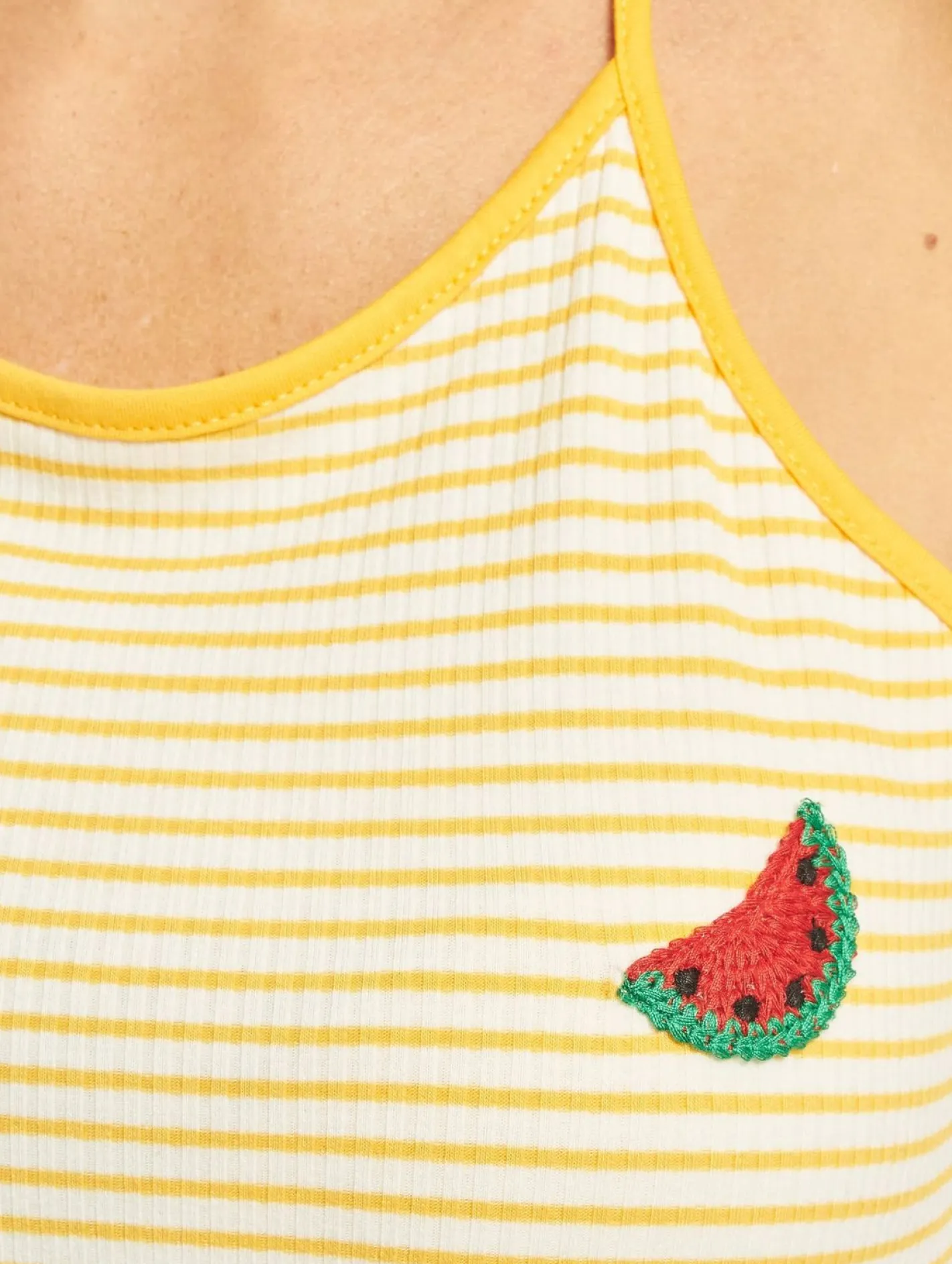 - Melonen-Stickerei im Brustbereich