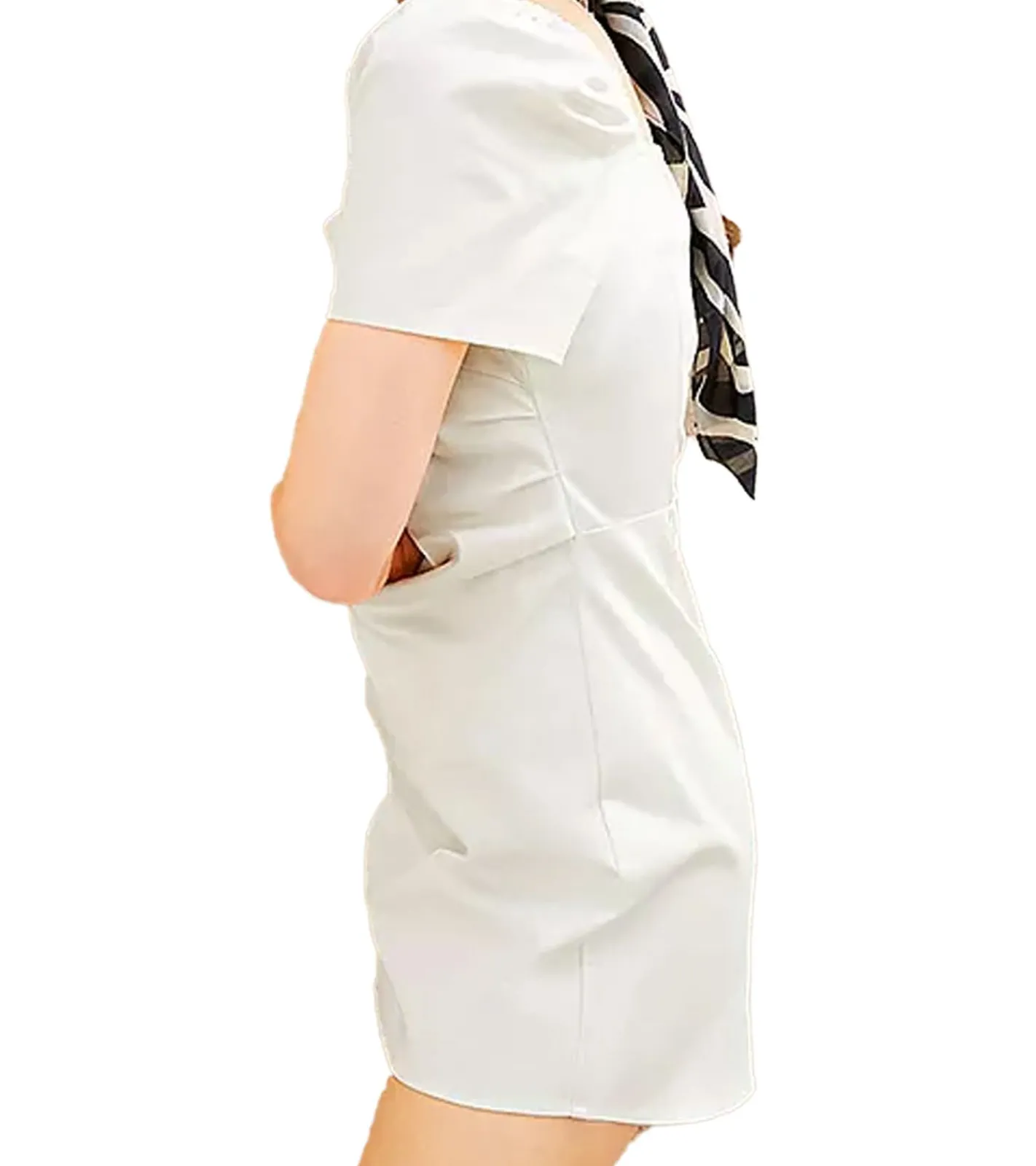 - Die kurzen Puffärmel verleihen einen Hauch von Weiblichkeit, während die seitliche Raffung die Silhouette schmeichelt