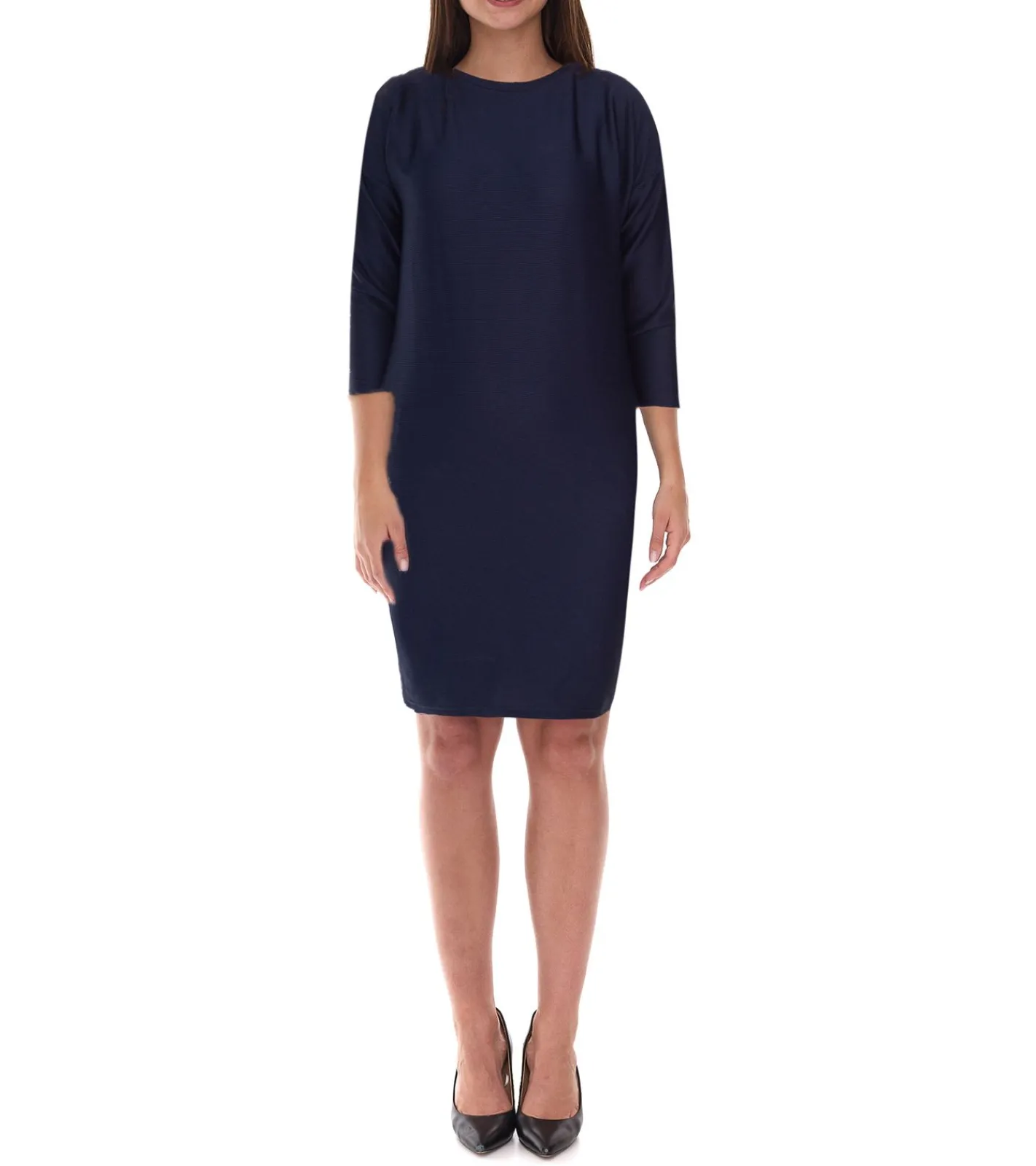 Damen Sommer-Kleid Jersey-Kleid in Ripp-Strick-Struktur mit 3/4 Arm 962523 Dunkelblau
