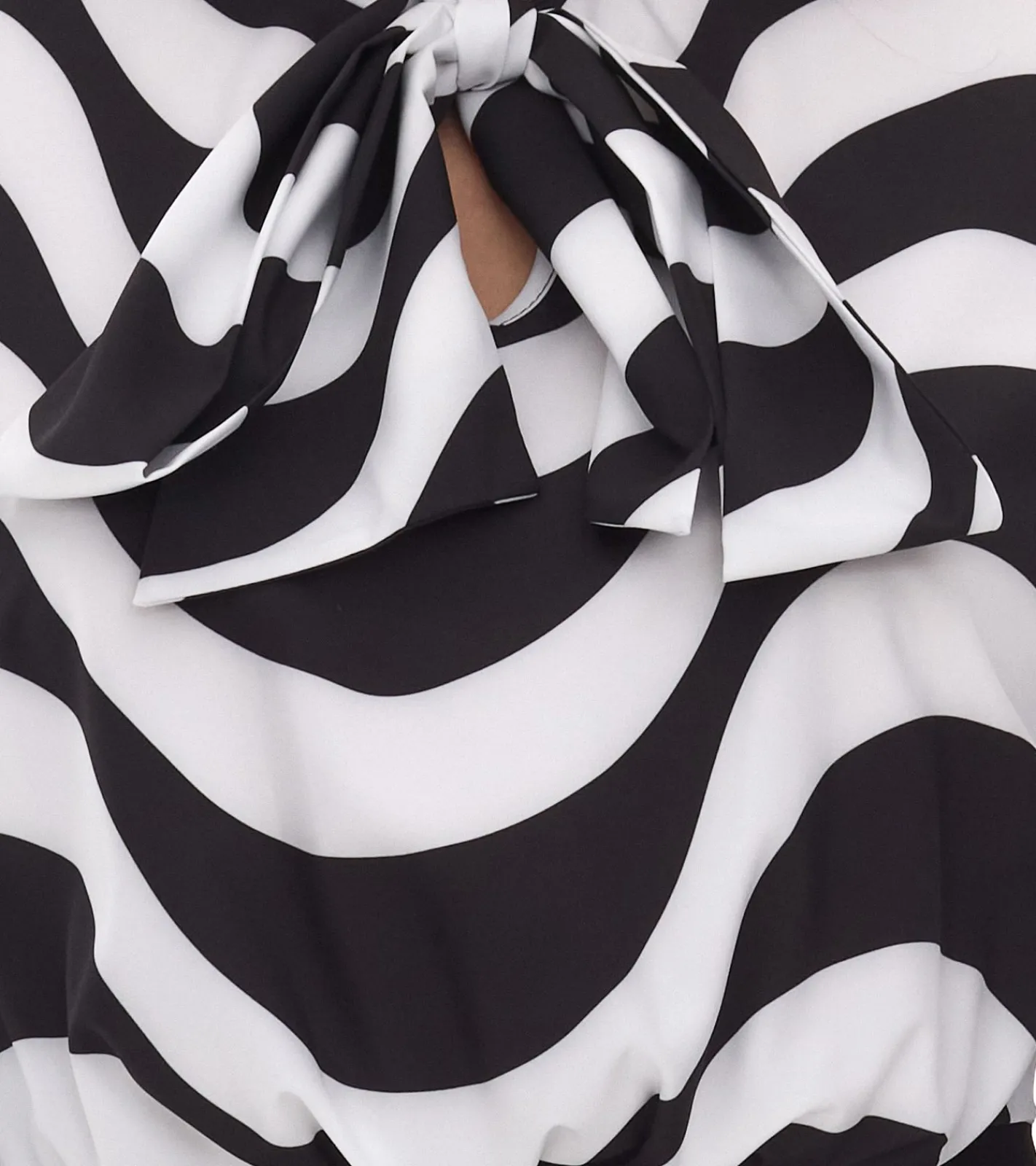 elegantes Damen Midi-Kleid Business-Kleid mit Schluppe Sommer-Kleid Langarm-Kleid 940989 Schwarz/Weiß