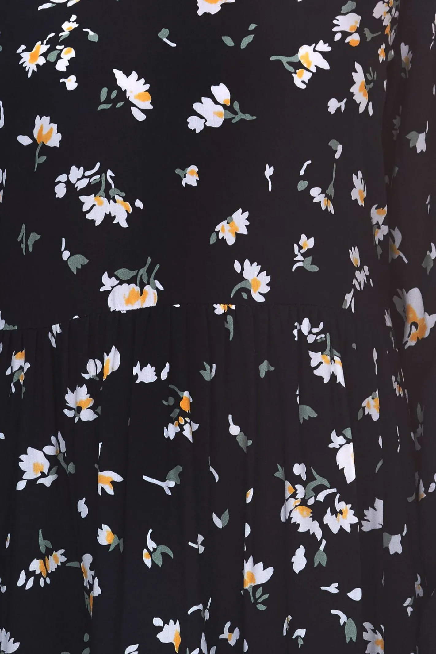 Tamaris Damen Mini-Kleid mit langen Ärmeln Web-Kleid mit floralem Allover-Print 38428365 Schwarz