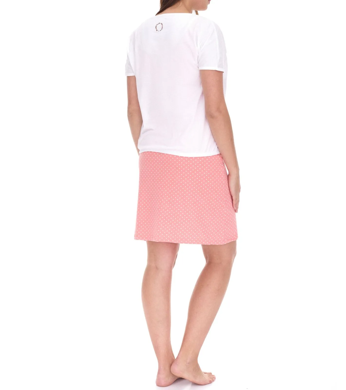 2 in 1 ALIFE AND KICKIN Damen Sommer-Kleid und Kurzarm-Shirt Mini-Kleid gepunktetes Baumwoll-Kleid T-Shirt 66118659 Rosa/Weiß