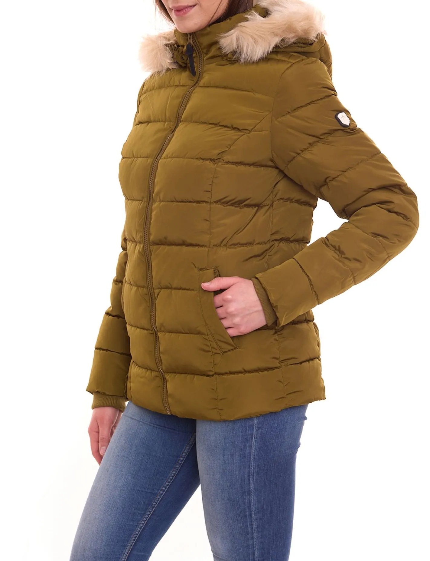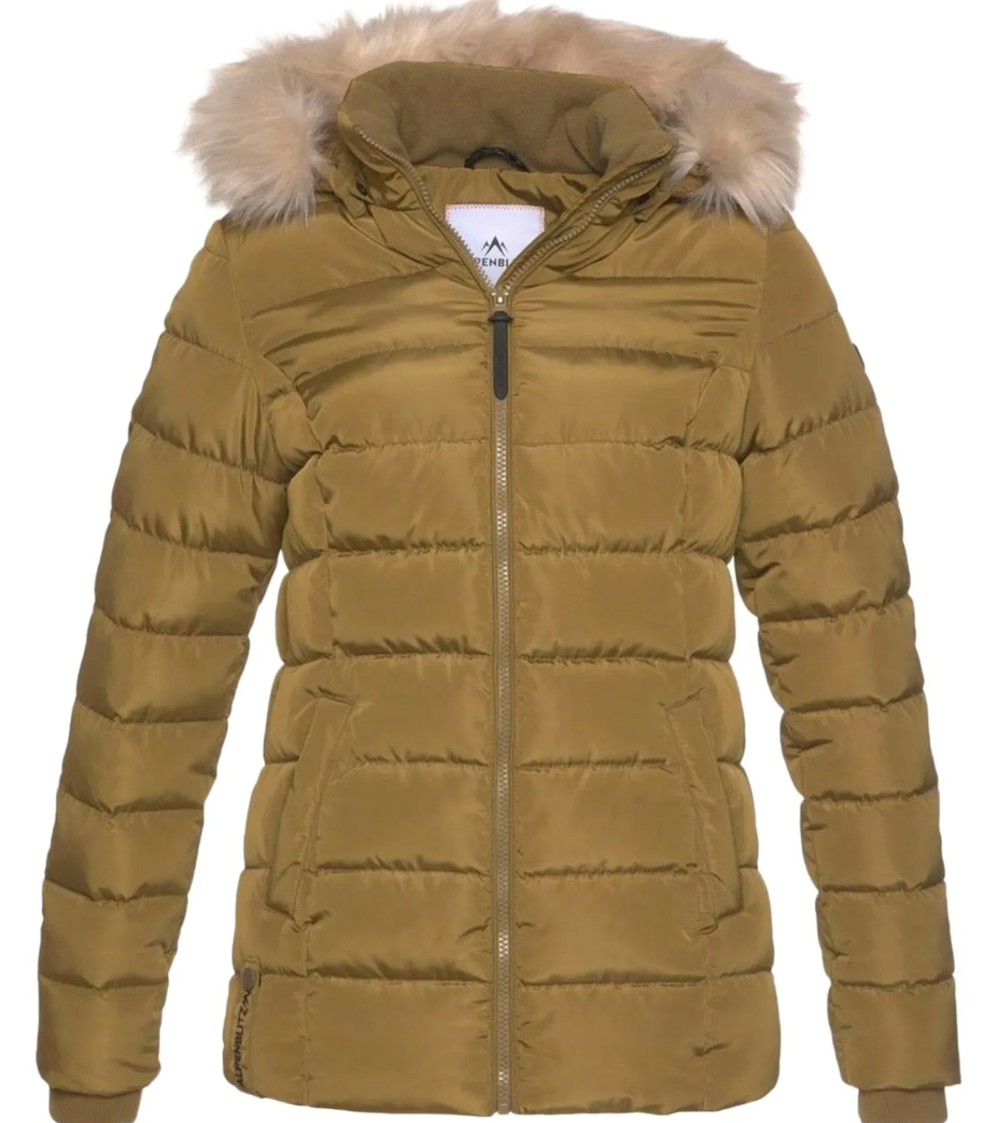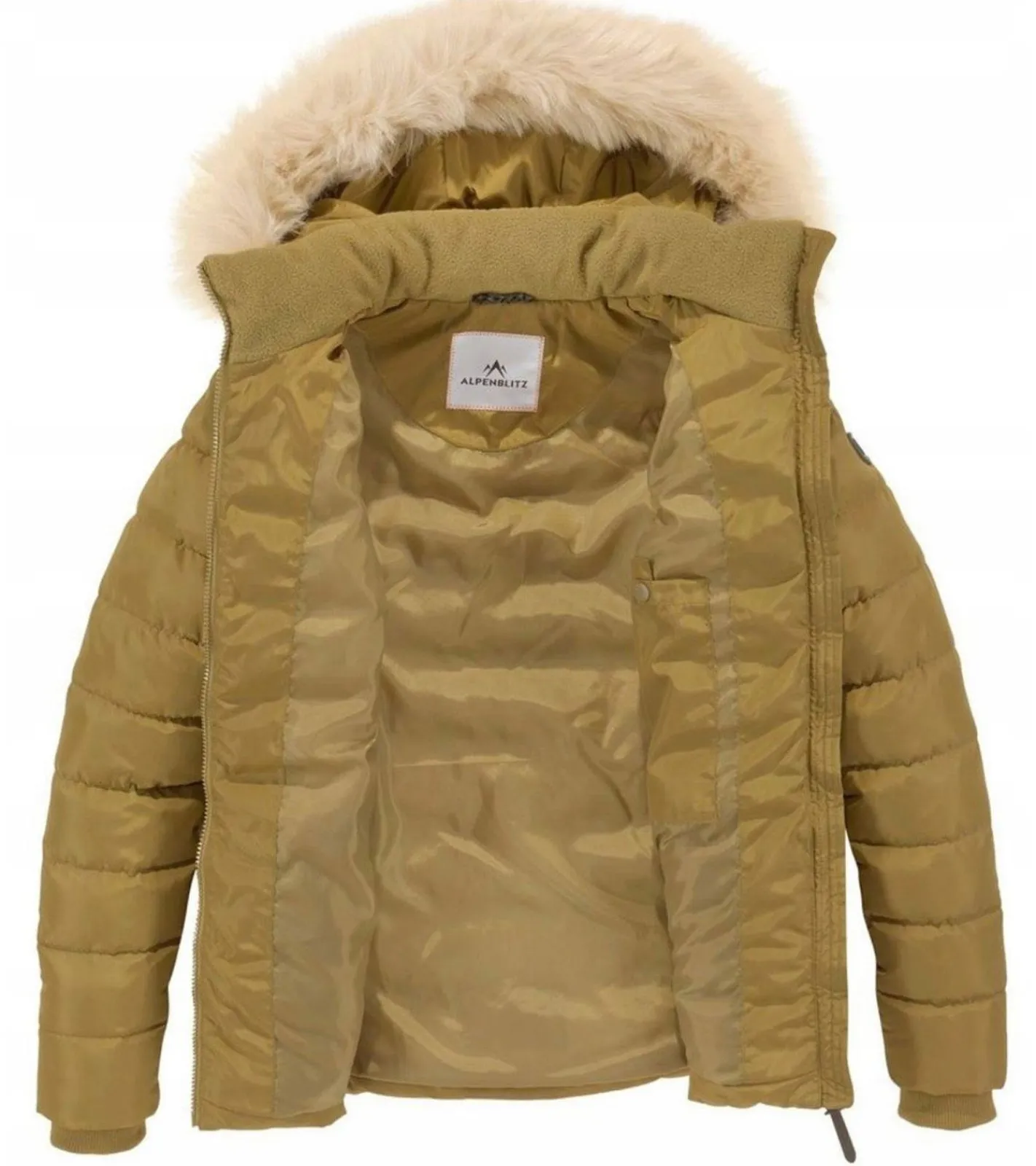 ALPENBLITZ Semeru Damen Outdoor-Jacke wattierte Winter-Jacke mit abnehmbarer Kapuze und einzeln abnehmbarem Kunstfell 12718035 Khaki