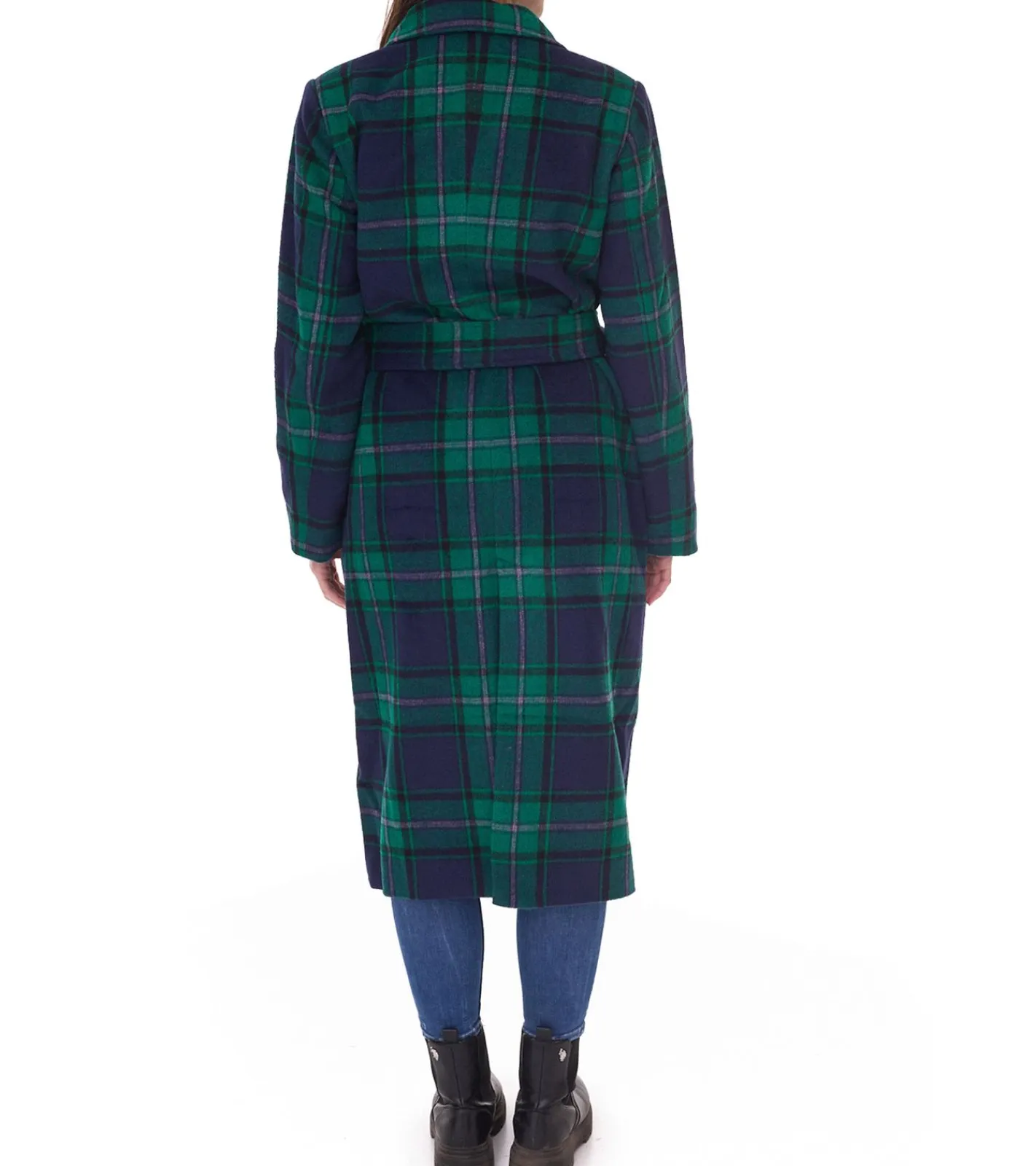 DELMAO Damen Mantel karierte Herbst-Jacke mit Reverskragen und Bindegürtel 17844429 Grün/Blau