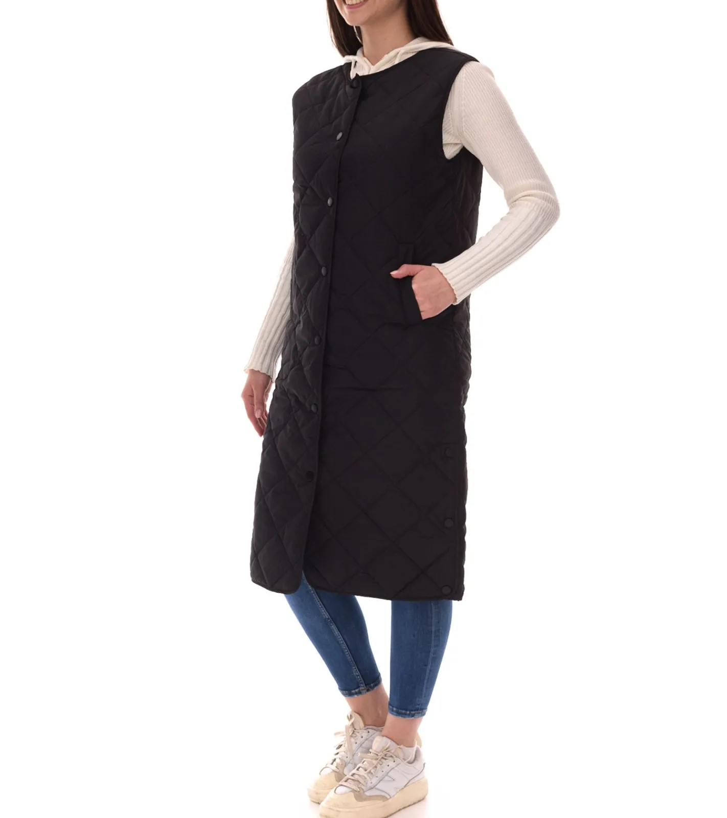 HECHTER PARIS Damen lange Stepp-Weste mit durchgehender Knopfleiste Outdoor-Weste 53241934 Schwarz