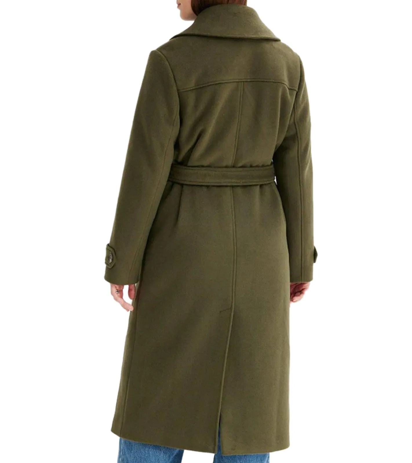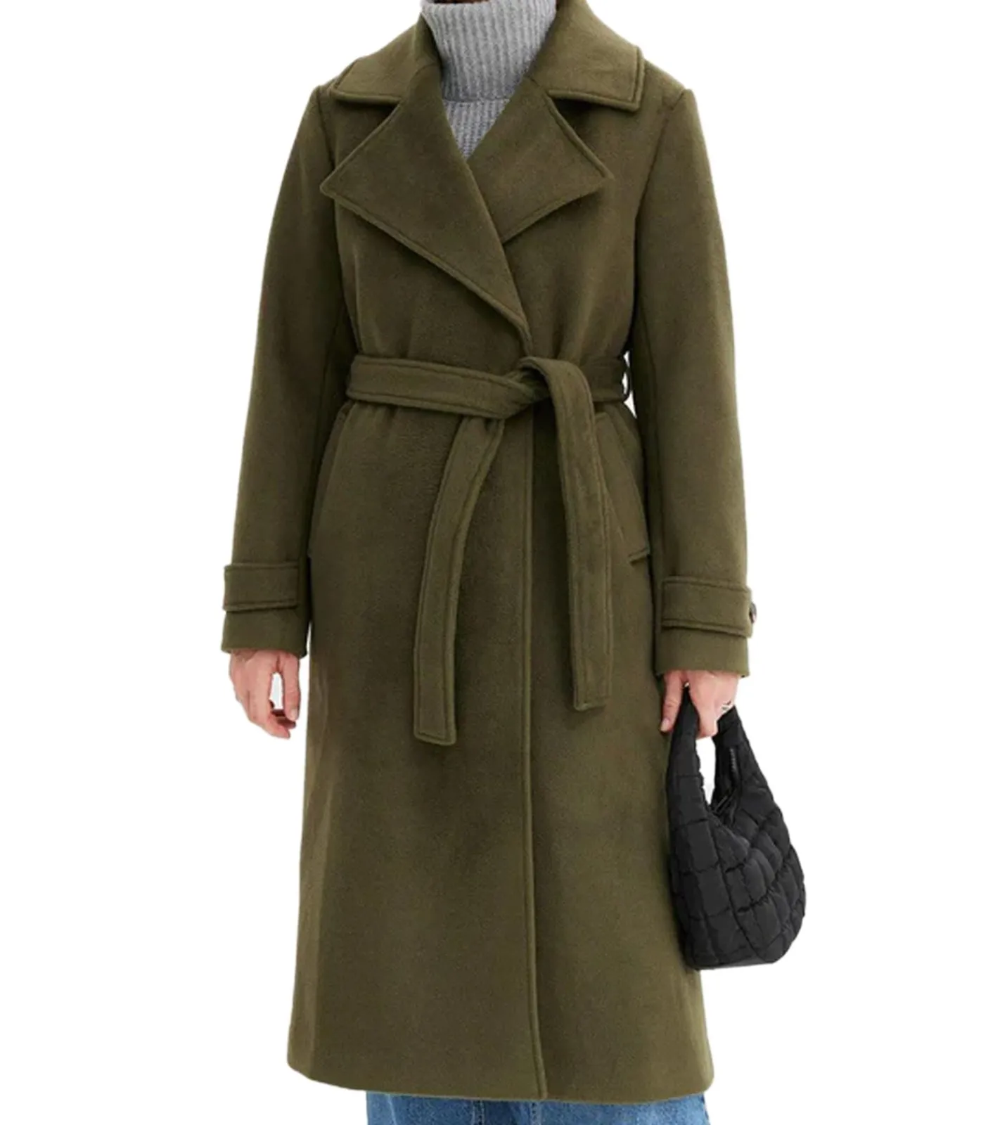 Damen Mantel in Wolloptik nachhaltiger Basic-Mantel mit Reverskragen Alltags-Jacke 907949 Olivgrün