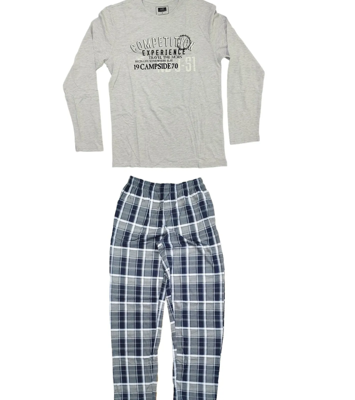 AM LEGEND Herren Pyjama-Set 2-teilig karierter Schlafanzug IAN MPJ 23 Navy/Hellgrau