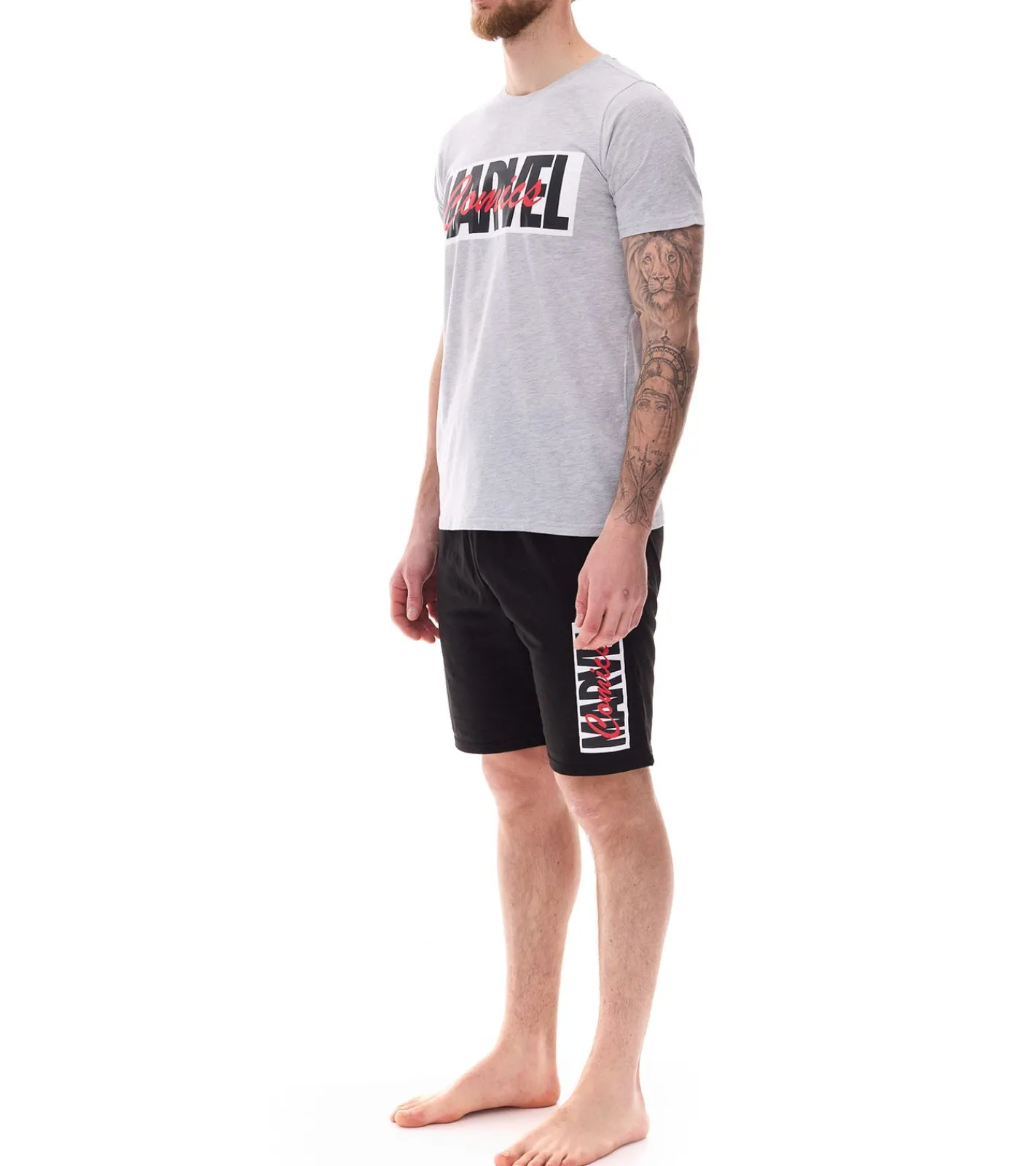 2er Pack MARVEL Herren Pyjama-Set mit MARVEL-Motiv Sommer-Pyjama kurzer Schlafanzug Homewear Grau/Schwarz