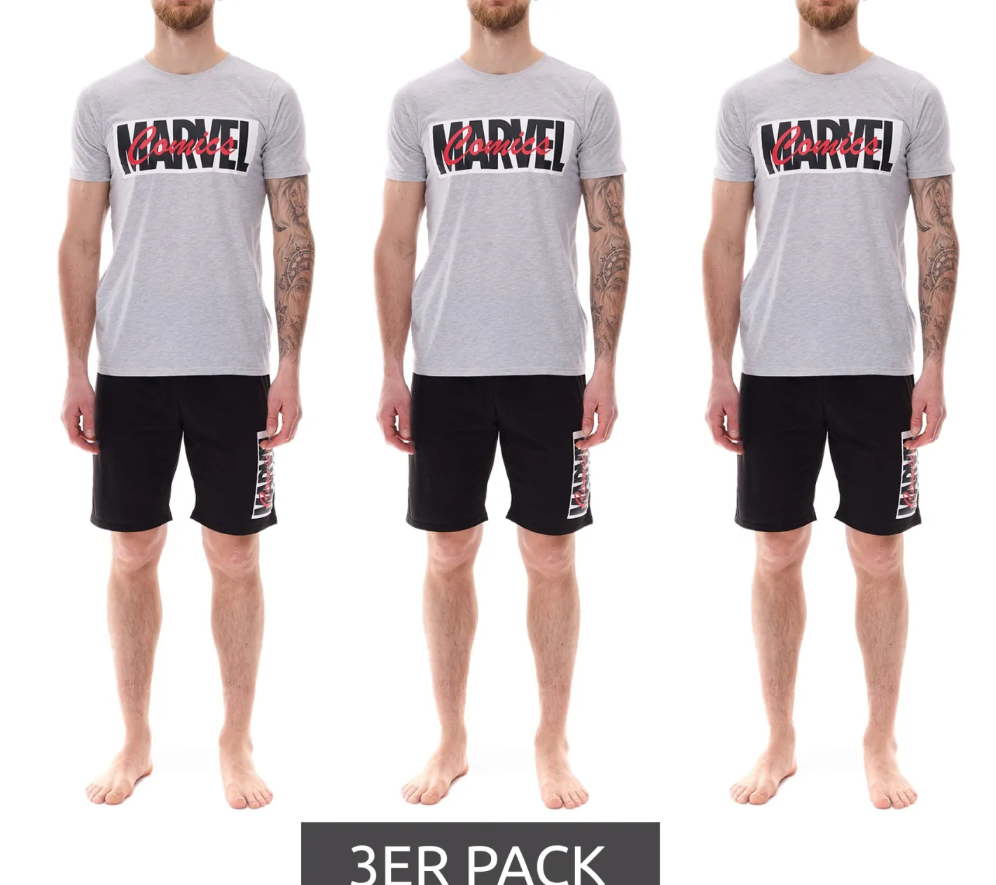3er Pack MARVEL Herren Pyjama-Set mit MARVEL-Motiv Sommer-Pyjama kurzer Schlafanzug Homewear Grau/Schwarz