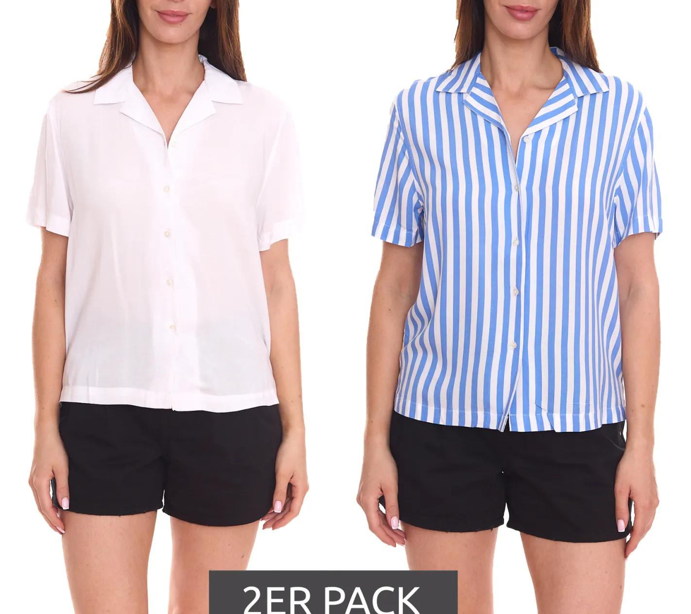2er Pack AjC Blusen luftige Damen Hemd-Blusen in zwei Farben mit Knopfleiste Blau/Weiß