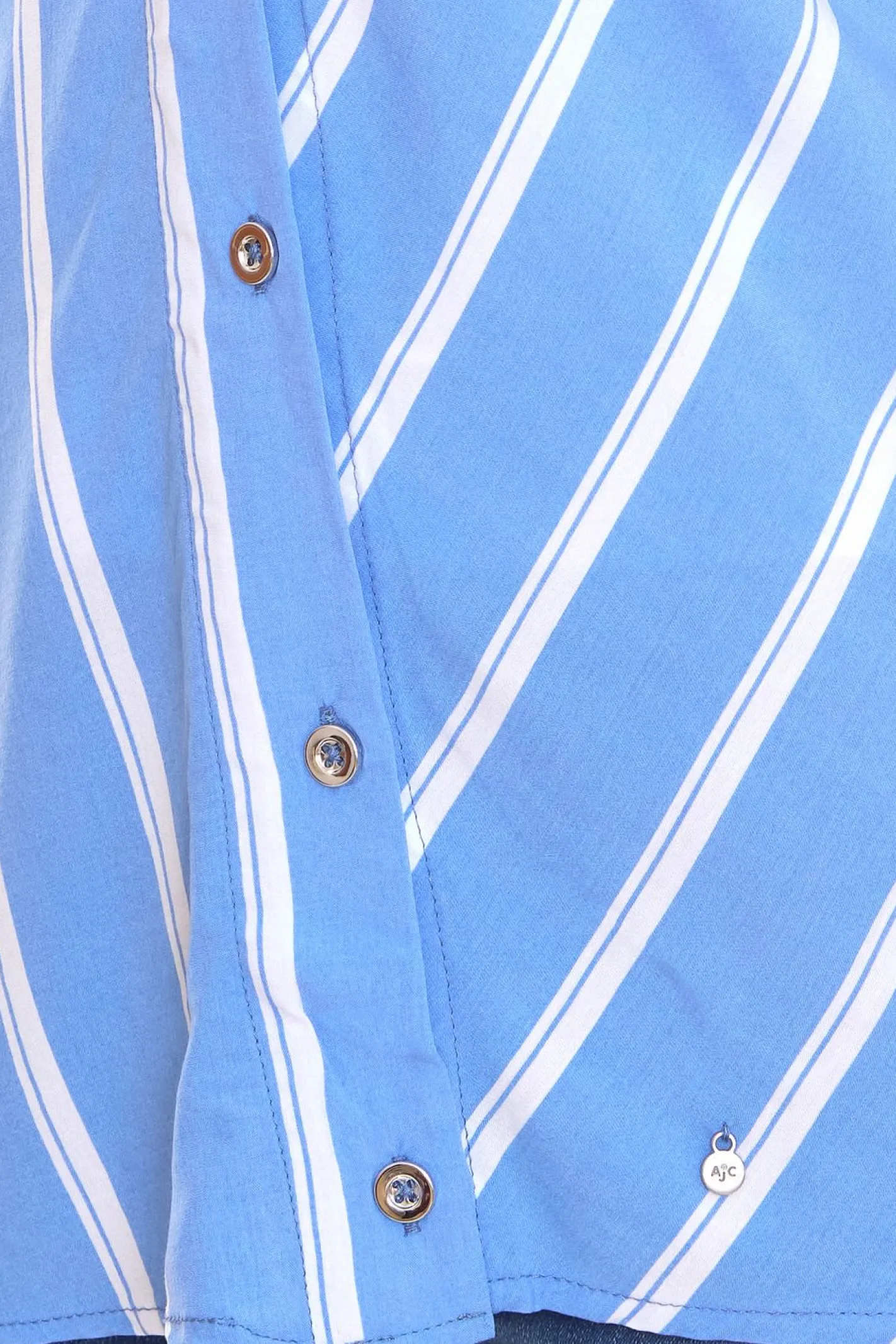 2er Sparpack AjC Damen Schlupf-Bluse nachhaltige V-Neck Bluse gestreift 48173418 Blau/Weiß