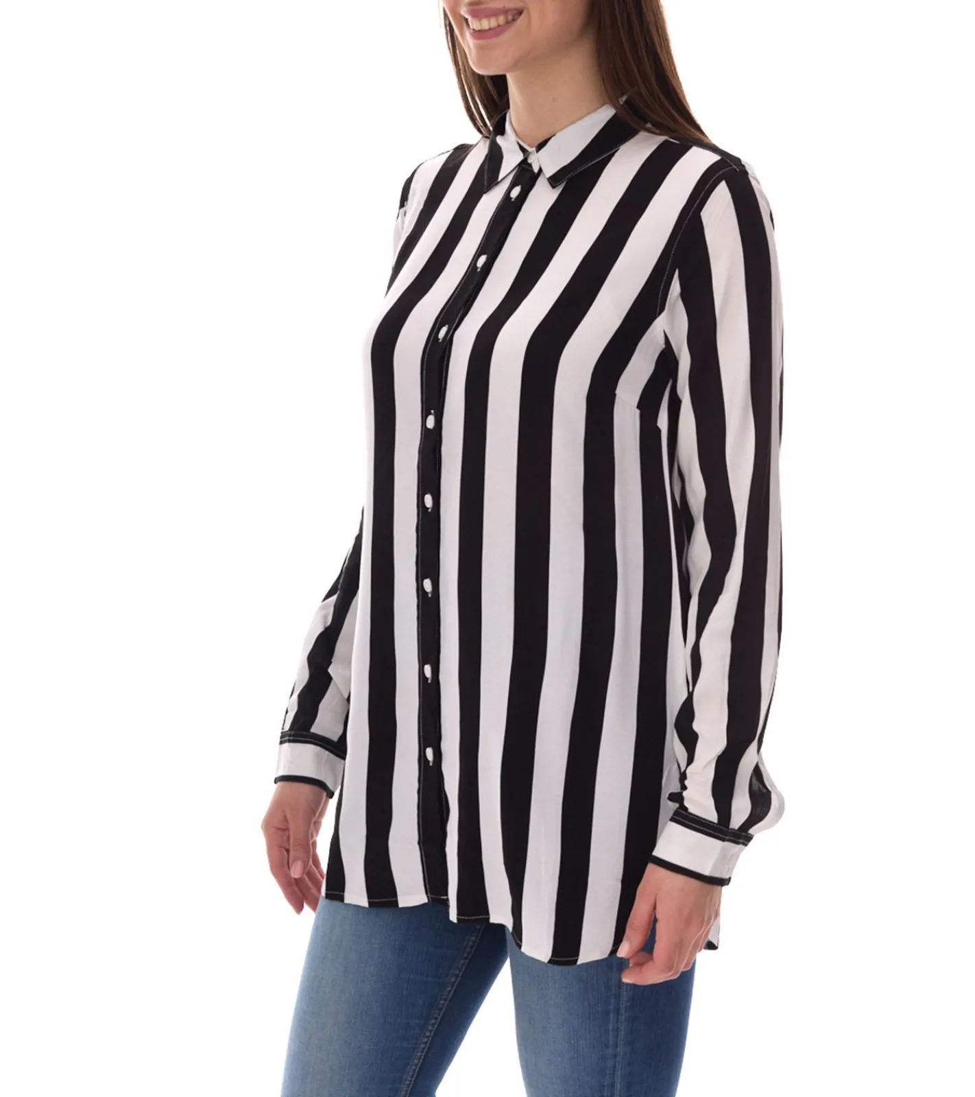 AjC Damen Hemd-Bluse gestreiftes Langarm-Hemd leichte Sommer-Bluse Freizeit-Bluse mit Knopfleiste 21945827 Weiß/Schwarz