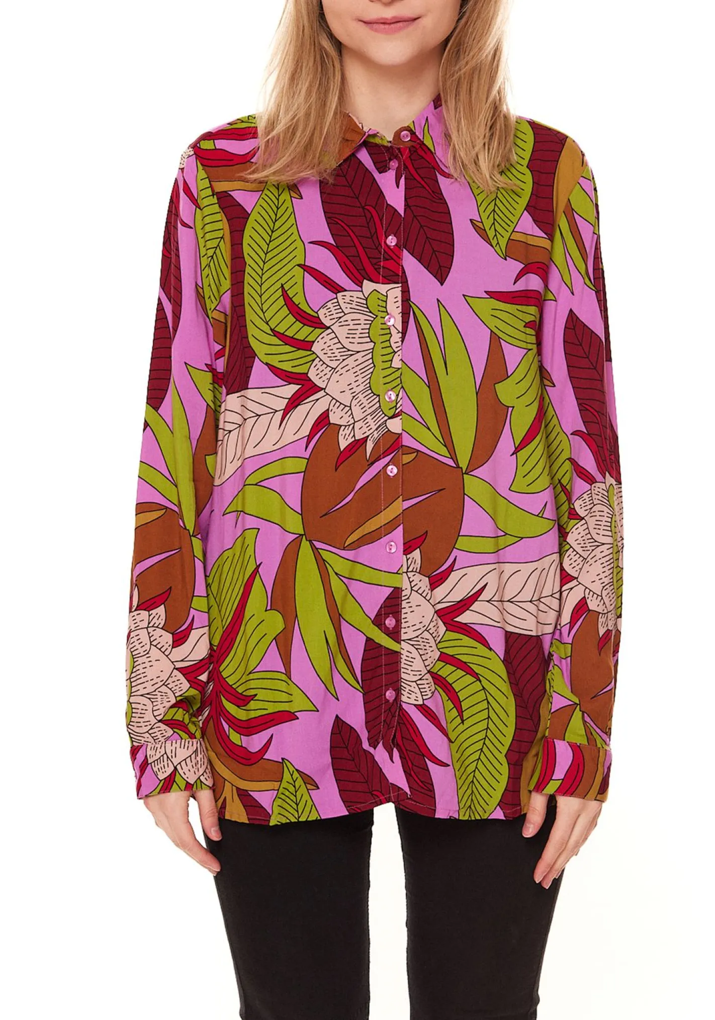 Aniston CASUAL Damen Freizeit-Bluse mit geblümten Muster Schlupf-Bluse 13010835 Rosa/Bunt