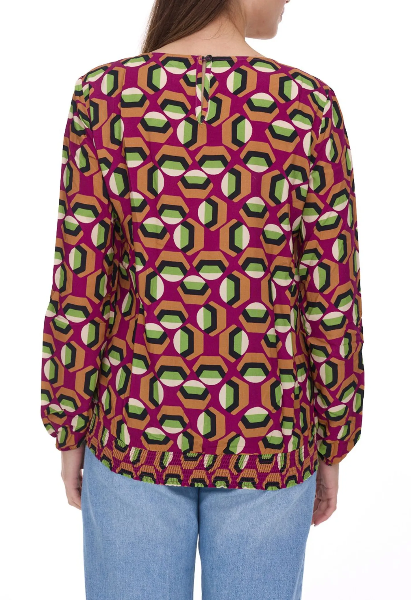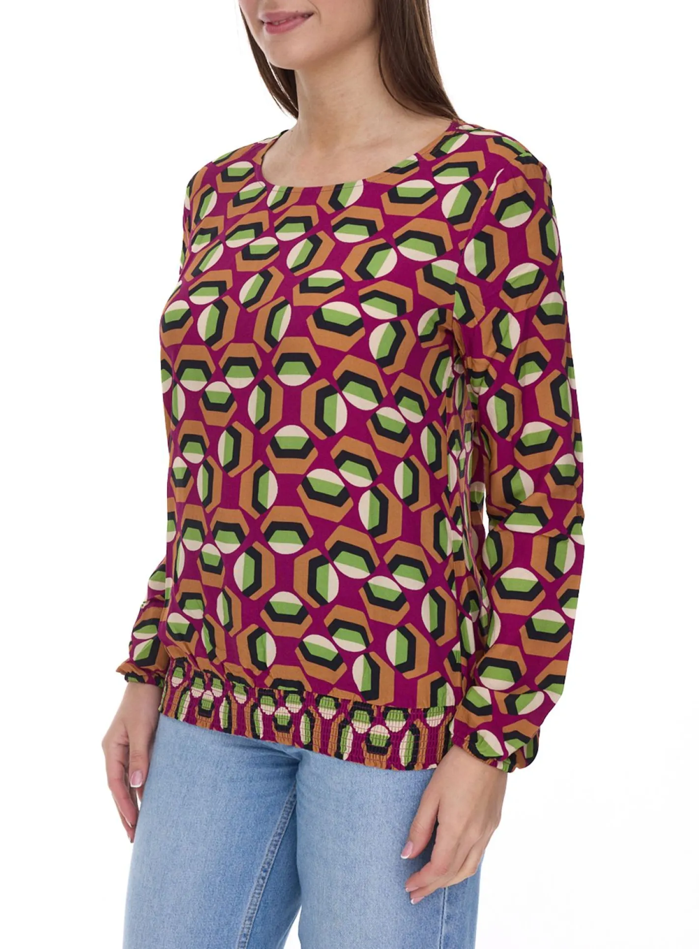 Aniston SELECTED Damen Blusen-Shirt Sommer-Bluse mit Gummizug 72981042 Rot/Bunt