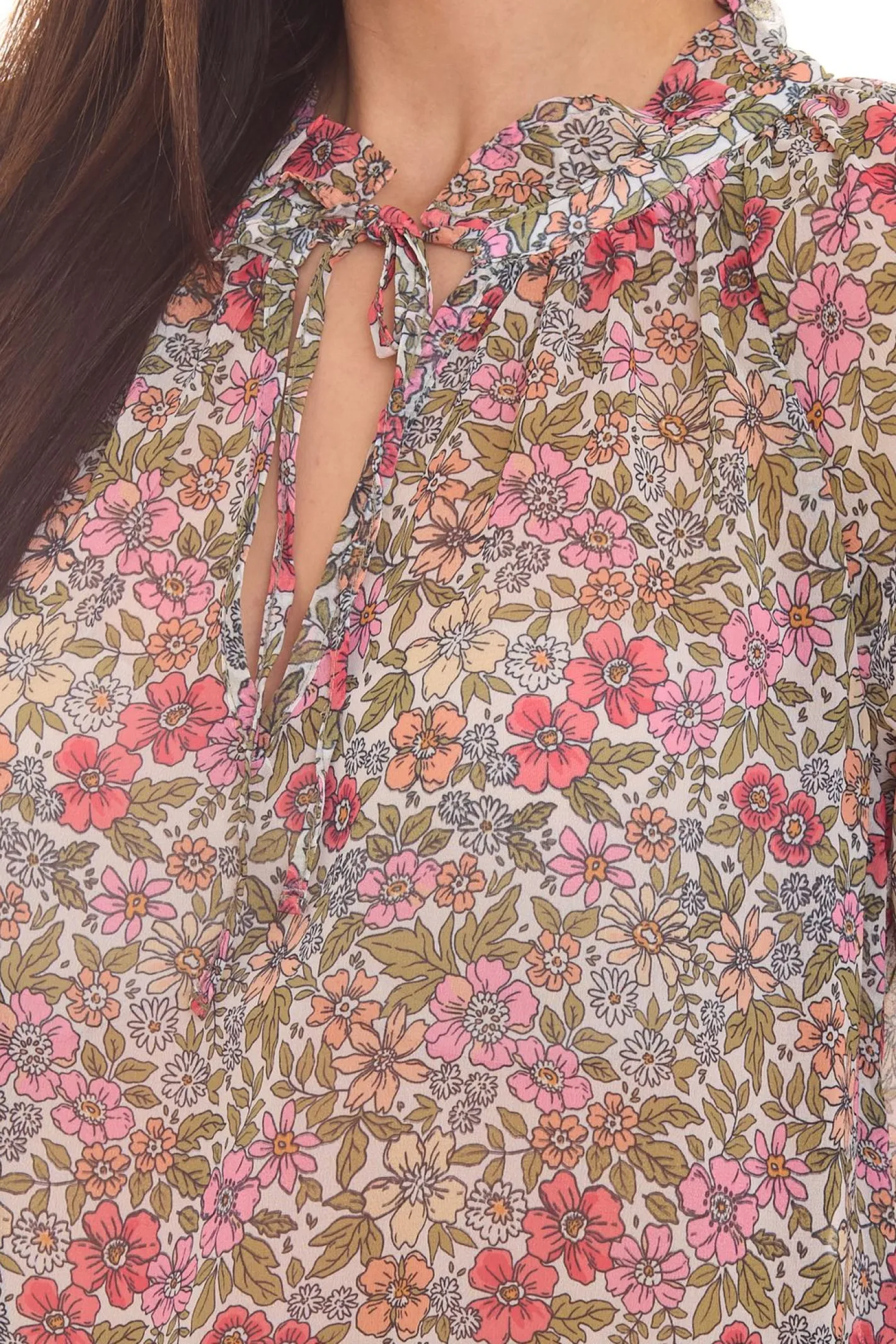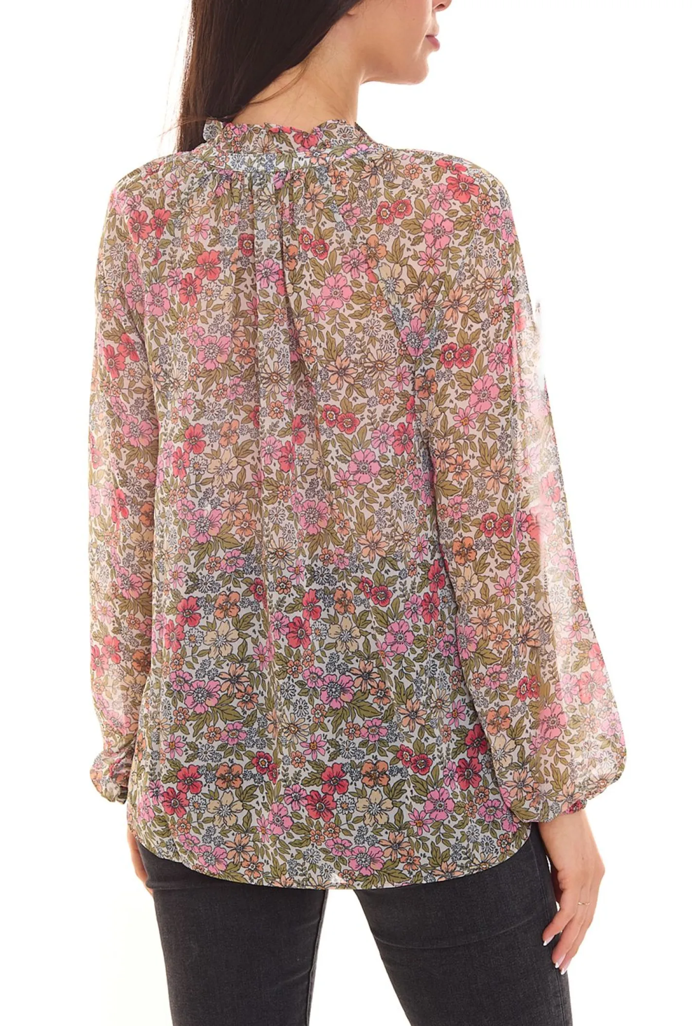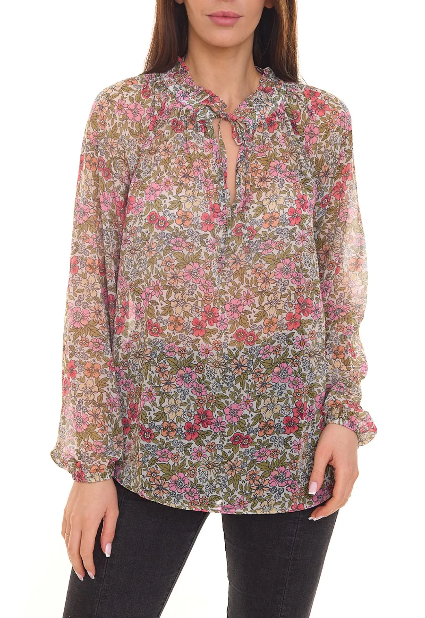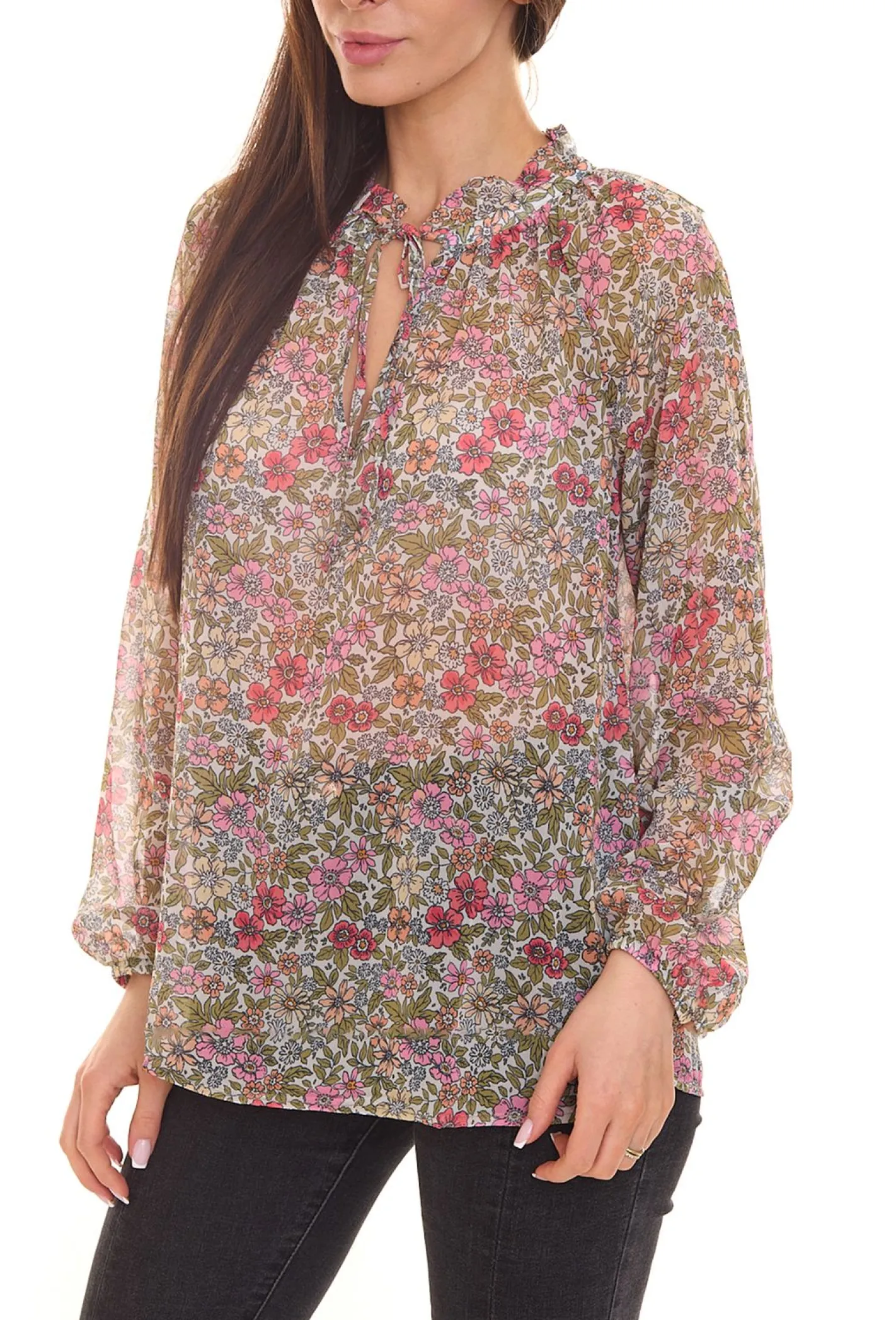 Aniston SELECTED Damen Sommer-Bluse durchsichtiges Shirt mit Allover-Print 37170051 Bunt