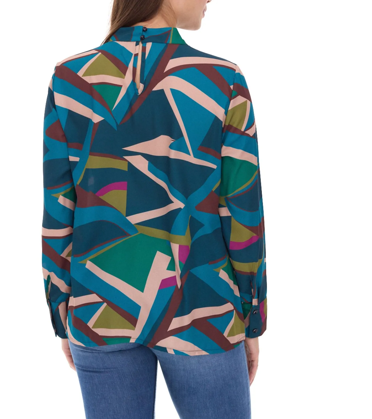Aniston SELECTED Damen Sommer-Bluse mit geometrischem Design Langarm-Shirt Frühlings-Bluse 78596706 Blau/Lila/Braun