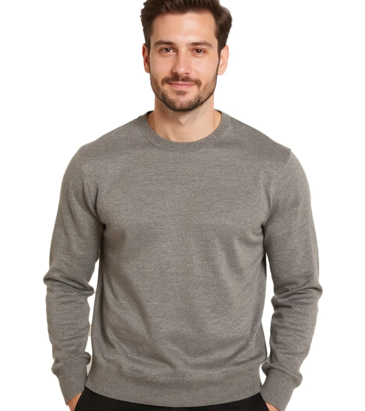 BARO Cousteau Herren Merino Woll-Pullover Strick-Pullover Grau