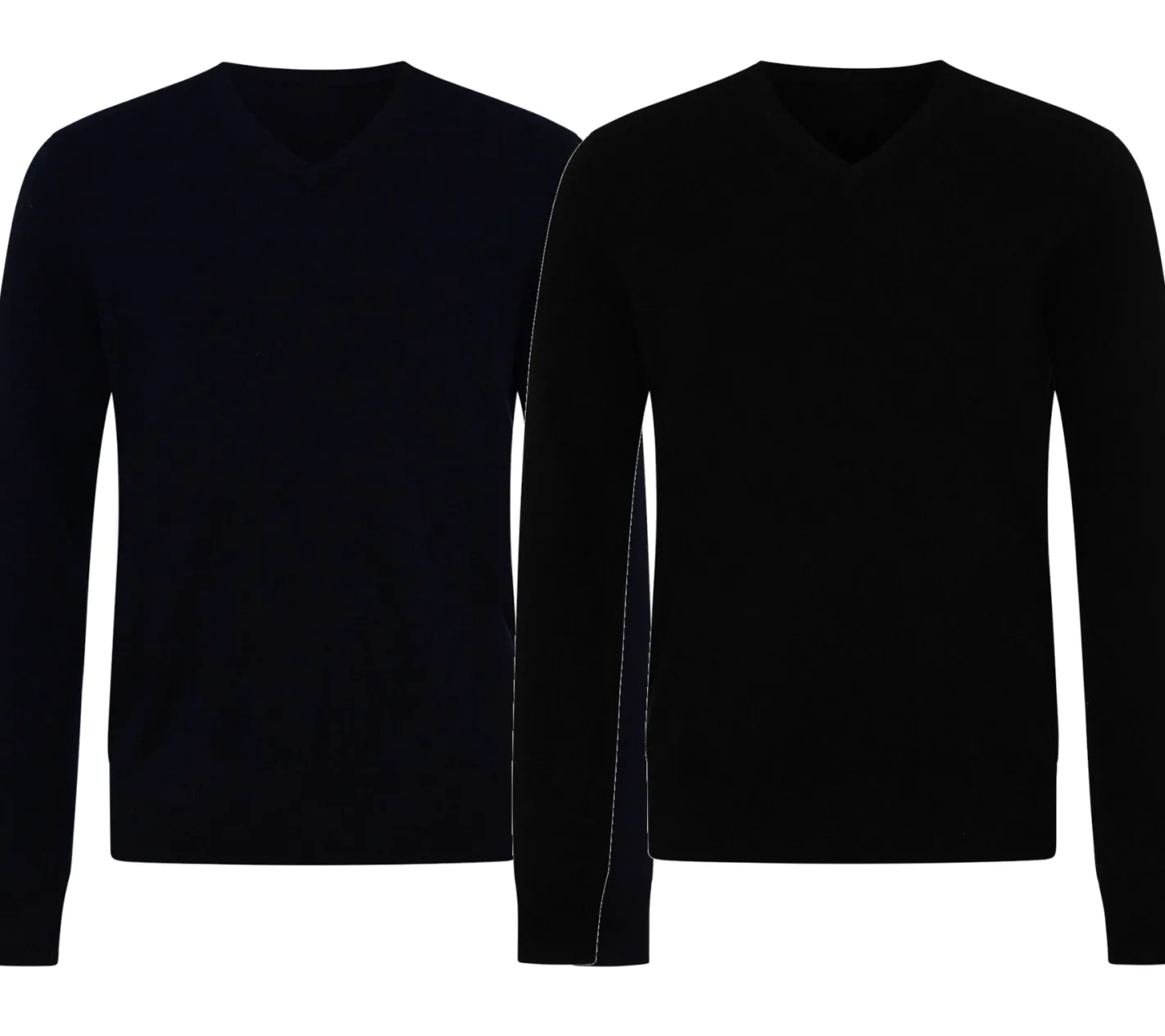 KKS STUDIOS Herren V-Neck Pullover aus 100% Kaschmir Sweater KK2350 Navy oder Schwarz