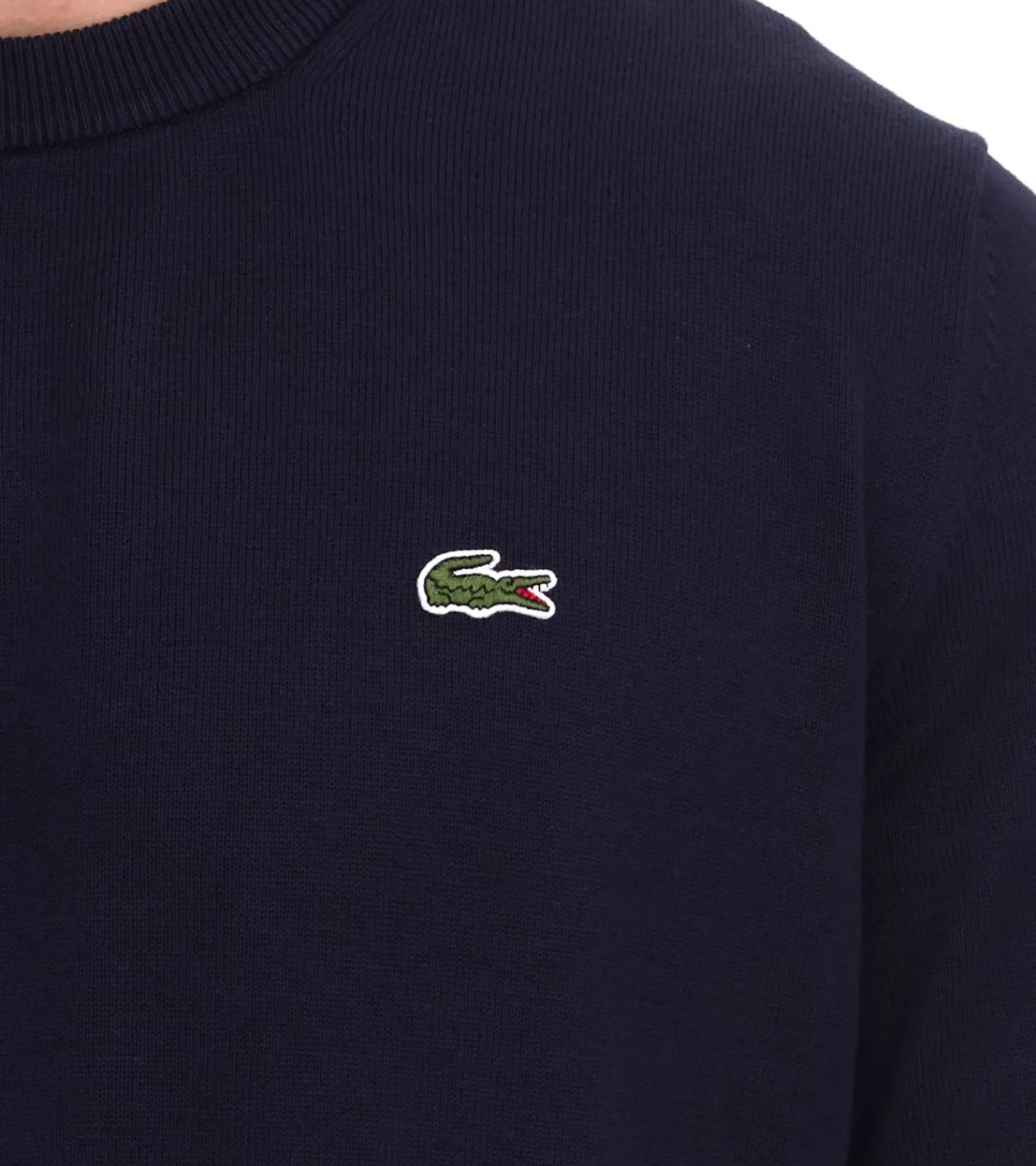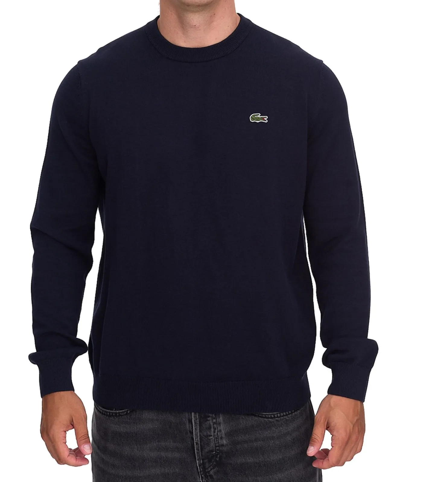 Lacoste Herren Strick-Pullover Baumwoll-Pullover mit Logo-Stickerei Langarm-Shirt AH0128 00 166 Dunkelblau