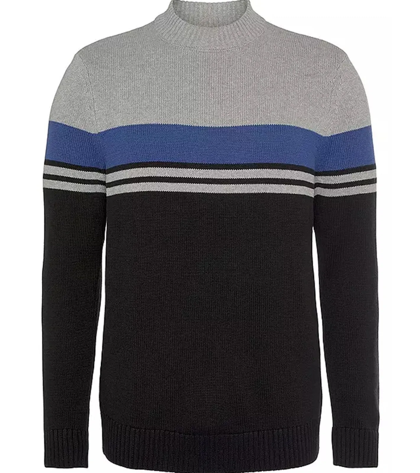 MAN`S WORLD Stripe Round Neck Herren Strick-Pullover mit Baumwoll-Anteil Color-Blocking 4485 8262 Grau/Schwarz/Blau