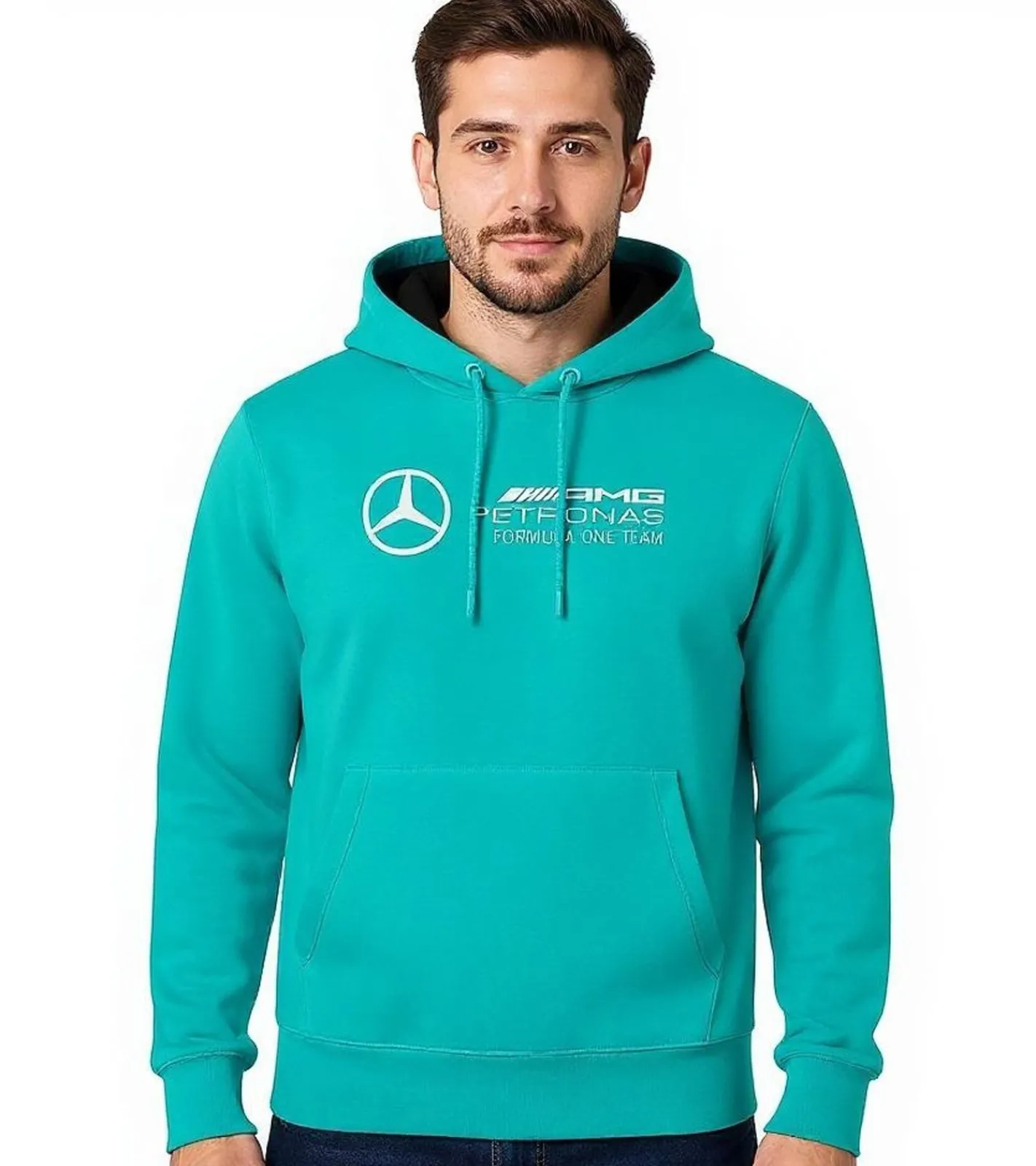 Mercedes-Benz AMG Petronas F1 Baumwoll-Hoodie Herren Kapuzen-Sweatshirt Formel 1 Team Logo 701227033 002 Türkis