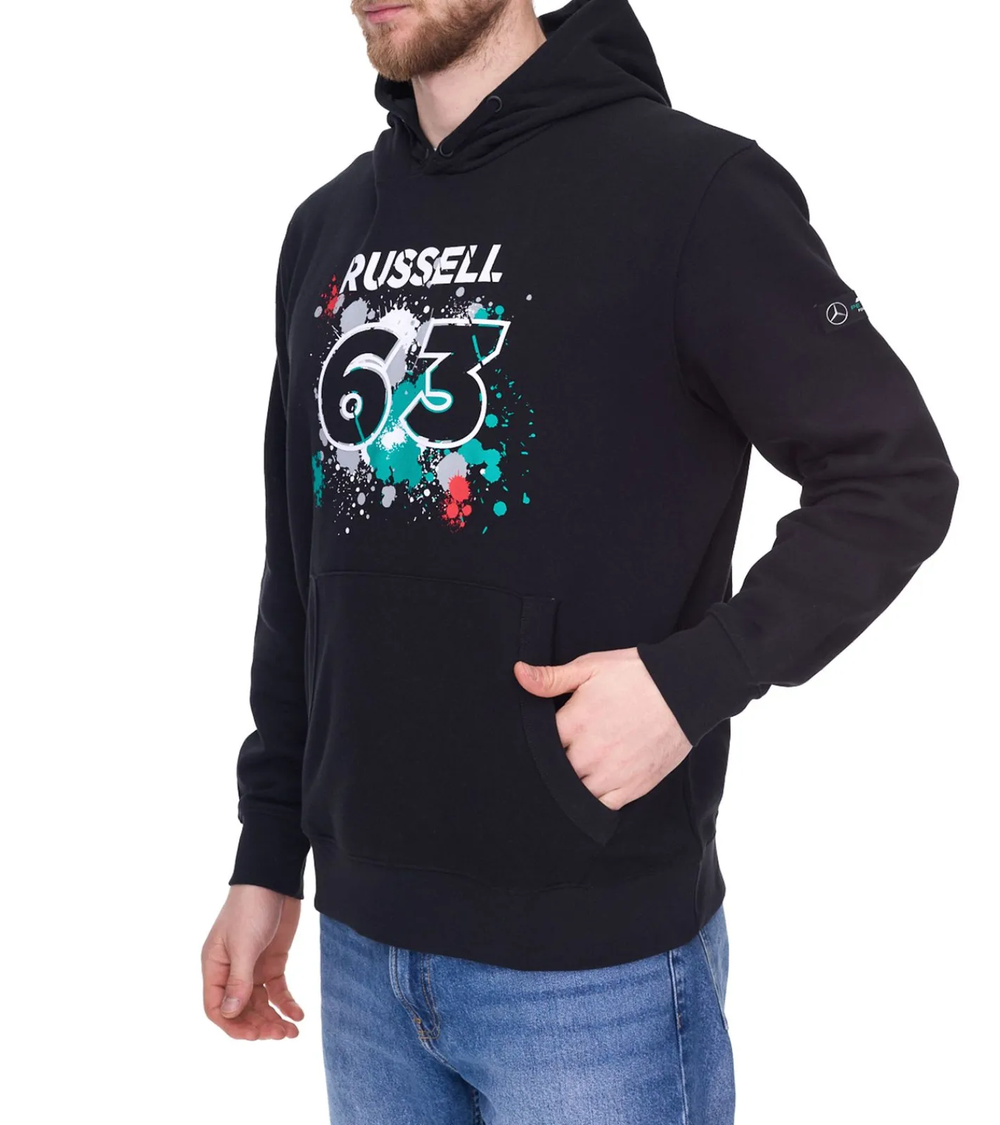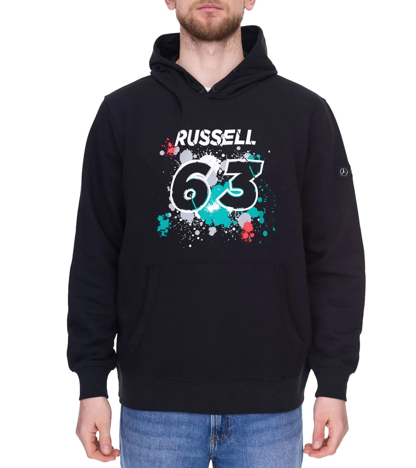 Mercedes-Benz AMG Petronas George Russell #63 Herren Hoodie Bio-Baumwoll Kapuzen-Pullover Sweater 701220835 001 Schwarz