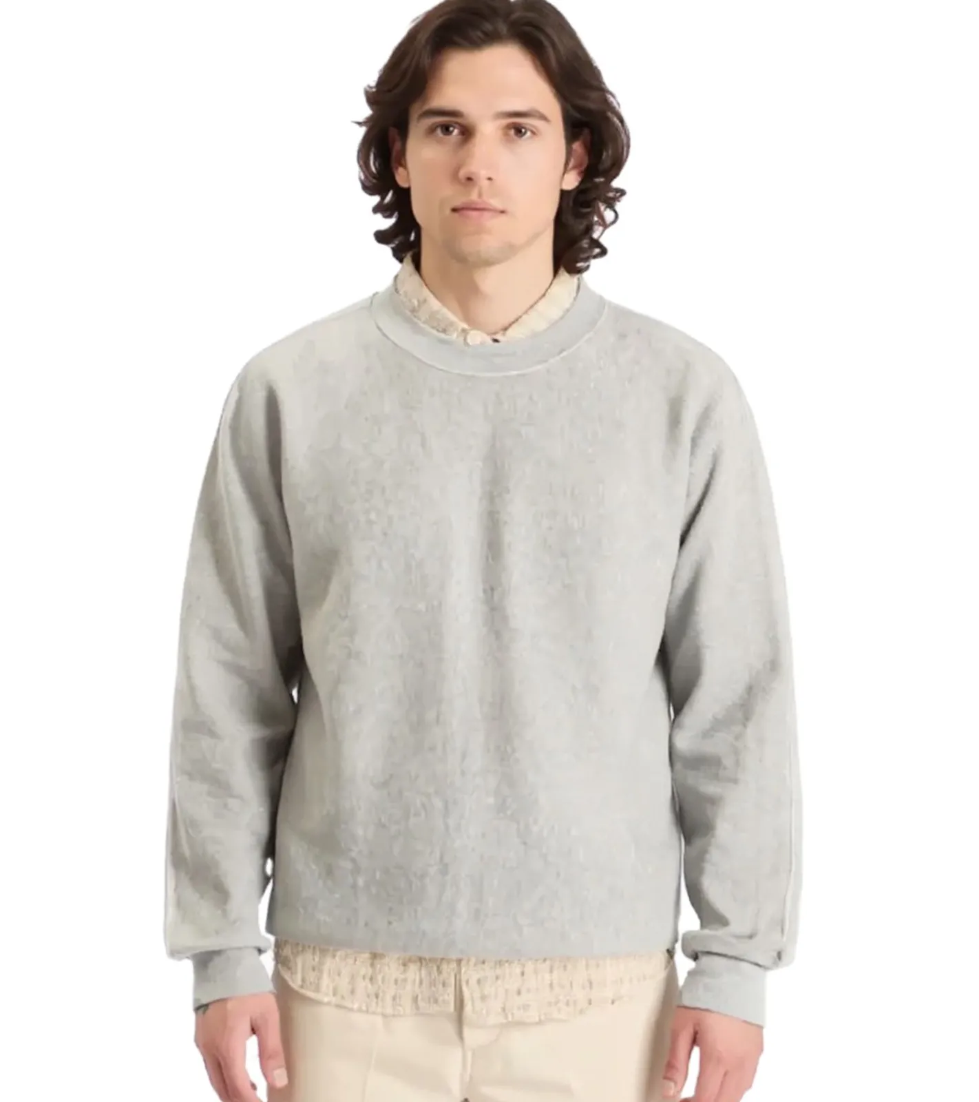 nanamica Herren Rundhals-Pullover Sweat-Shirt Herbst-Pullover Hellgrau