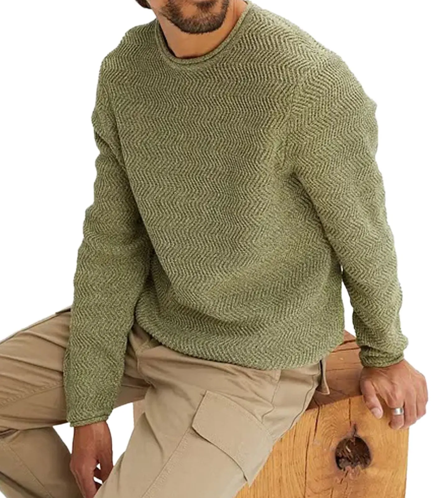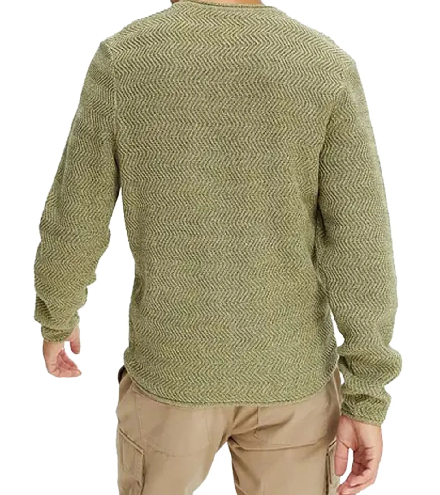 Herren Strick-Pullover mit Struktur-Muster nachhaltiger Rundhals-Sweater meliert Große Größen 978714 Oliv-Grün