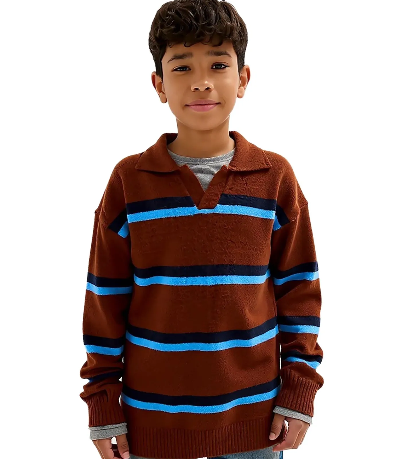 Kinder Strick-Pullover Jungen Rugby-Shirt Kragen-Pullover Herbst-Pullover 961675 Braun/Blau