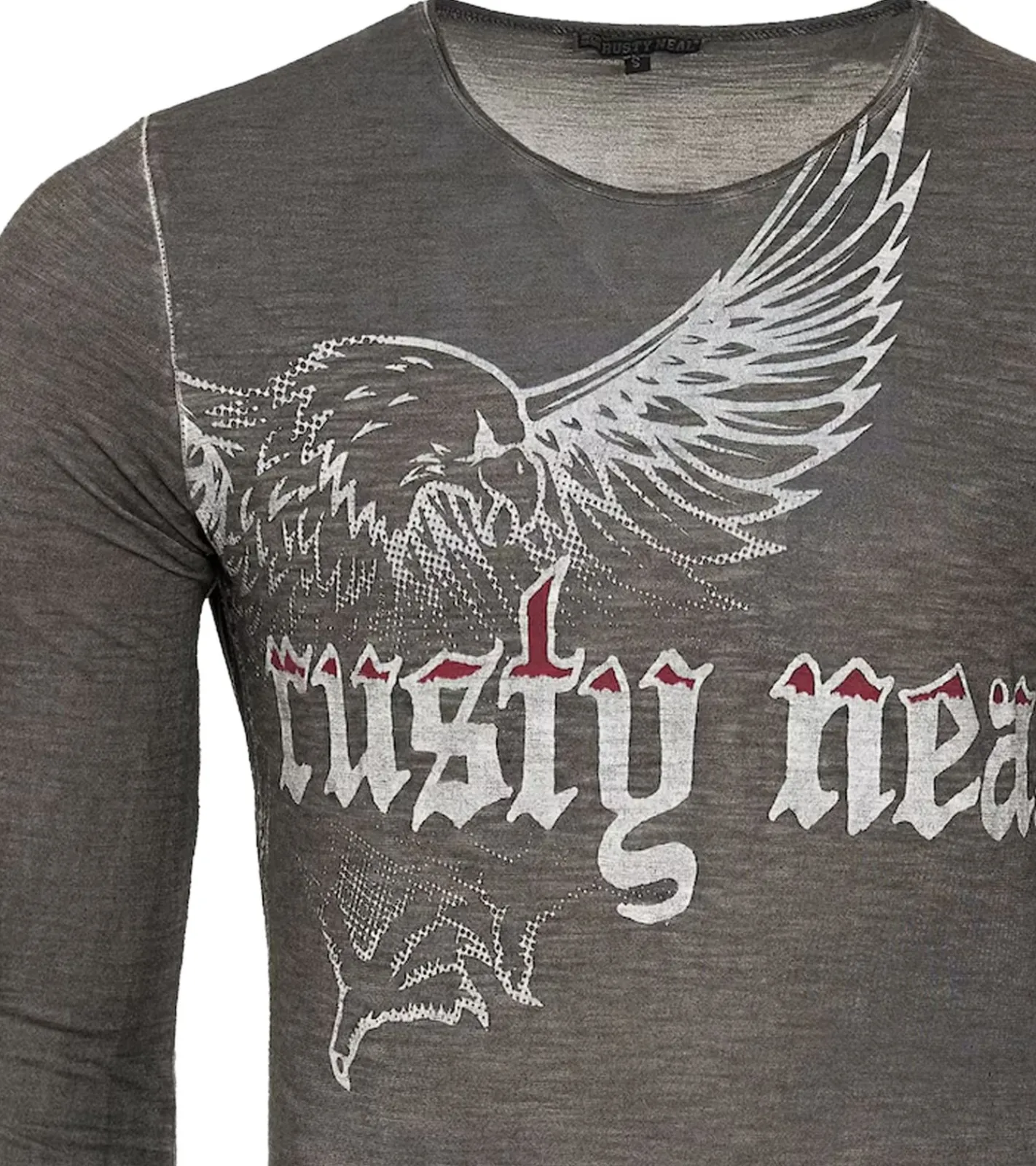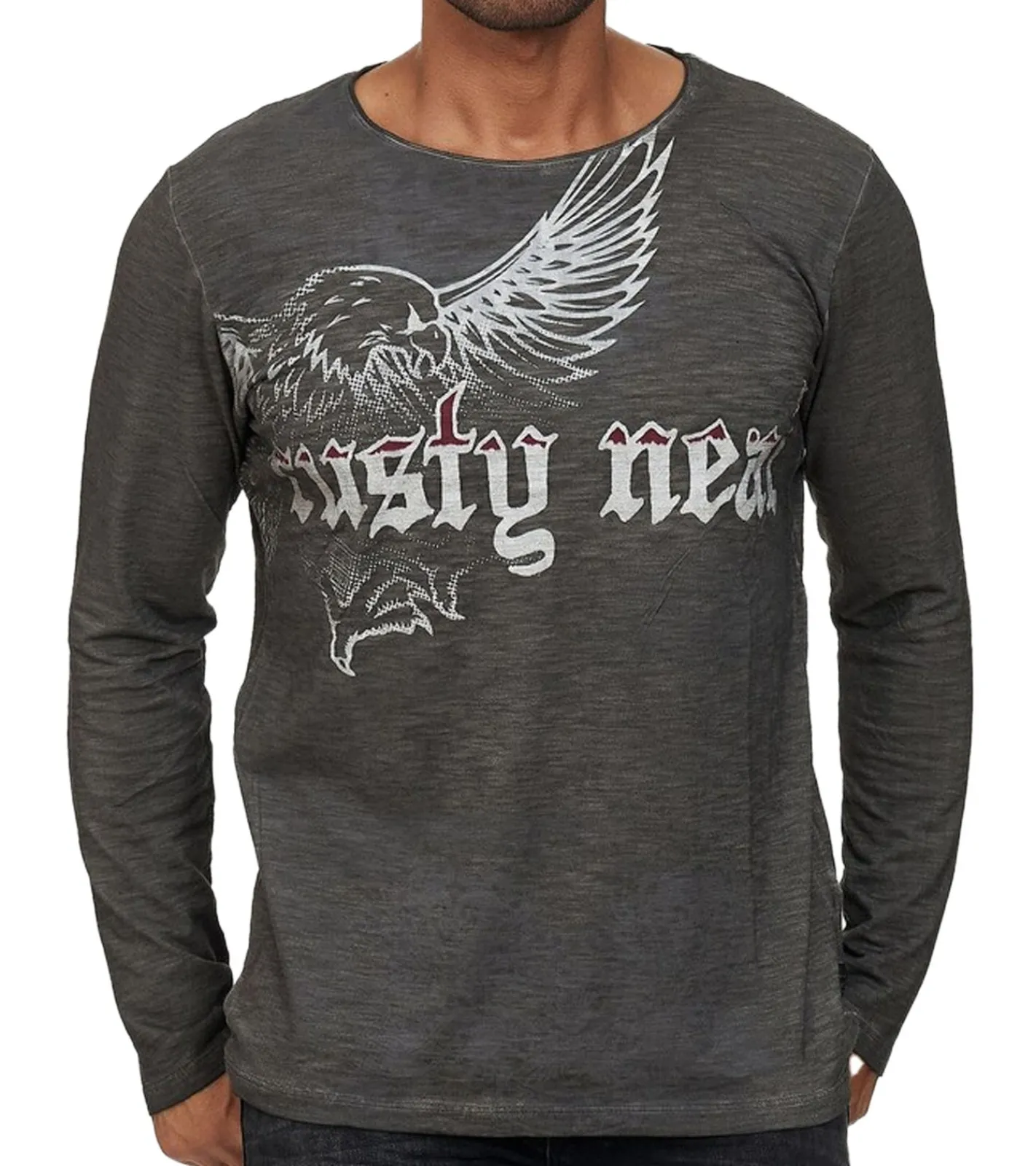 Herren Langarm-Shirt mit Adler Print Sommer-Baumwoll-Longsleeve Freizeit-Pullover R-10143 Grau