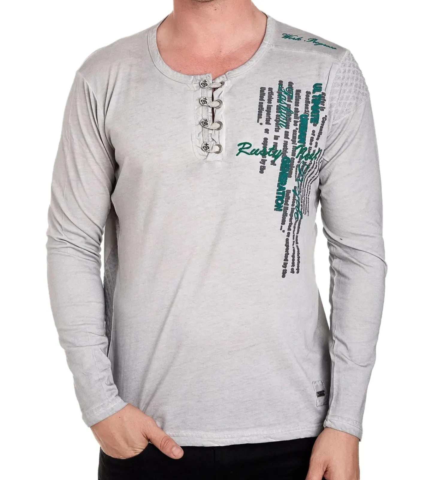 Herren Langarm-Shirt mit schlichten Print und Knopfleiste Sommer-Baumwoll-Longsleeve Freizeit-Pullover R-10139 Grau