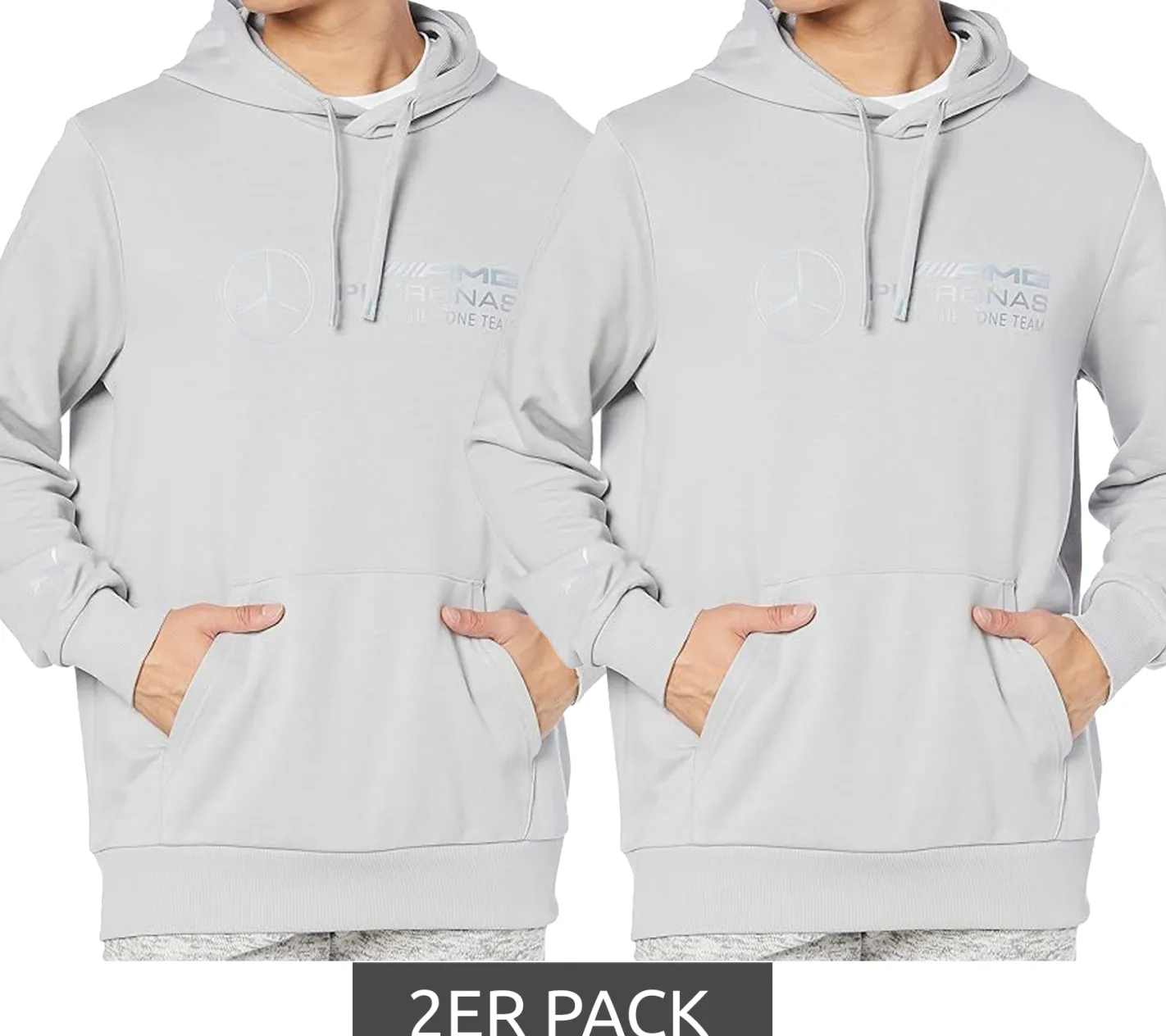 2er Sparpack PUMA X Mercedes-Benz AMG Petronas F1 MAPF1 LS Statement Herren Kapuzen-Pullover mit reflektierendem Logo Druck Baumwoll-Hoodie 621158 02 Grau