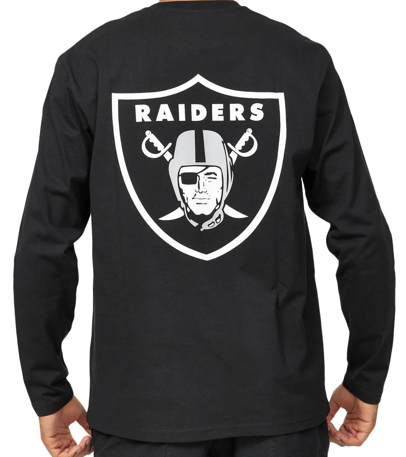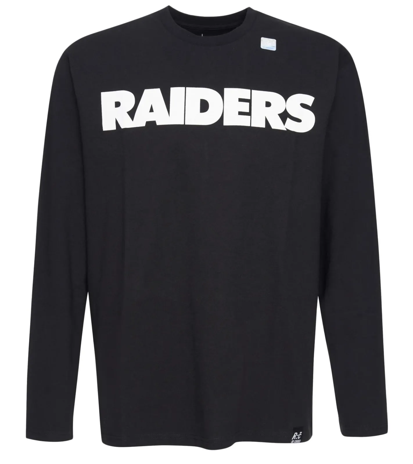 RE:COVERED NFL RAIDERS SCHIELD Herren nachhaltiges Rundhals-Shirt mit Team-Logo Baumwoll-Longsleeve Pullover MMNFL1135 Schwarz