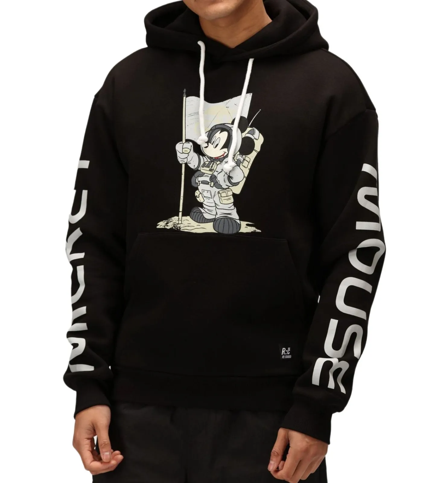 RE:COVERED X Disney Herren Kapuzen-Pullover mit Mickey Mouse-Print Baumwoll-Hoody Langarm-Shirt RCDIF2049 Schwarz