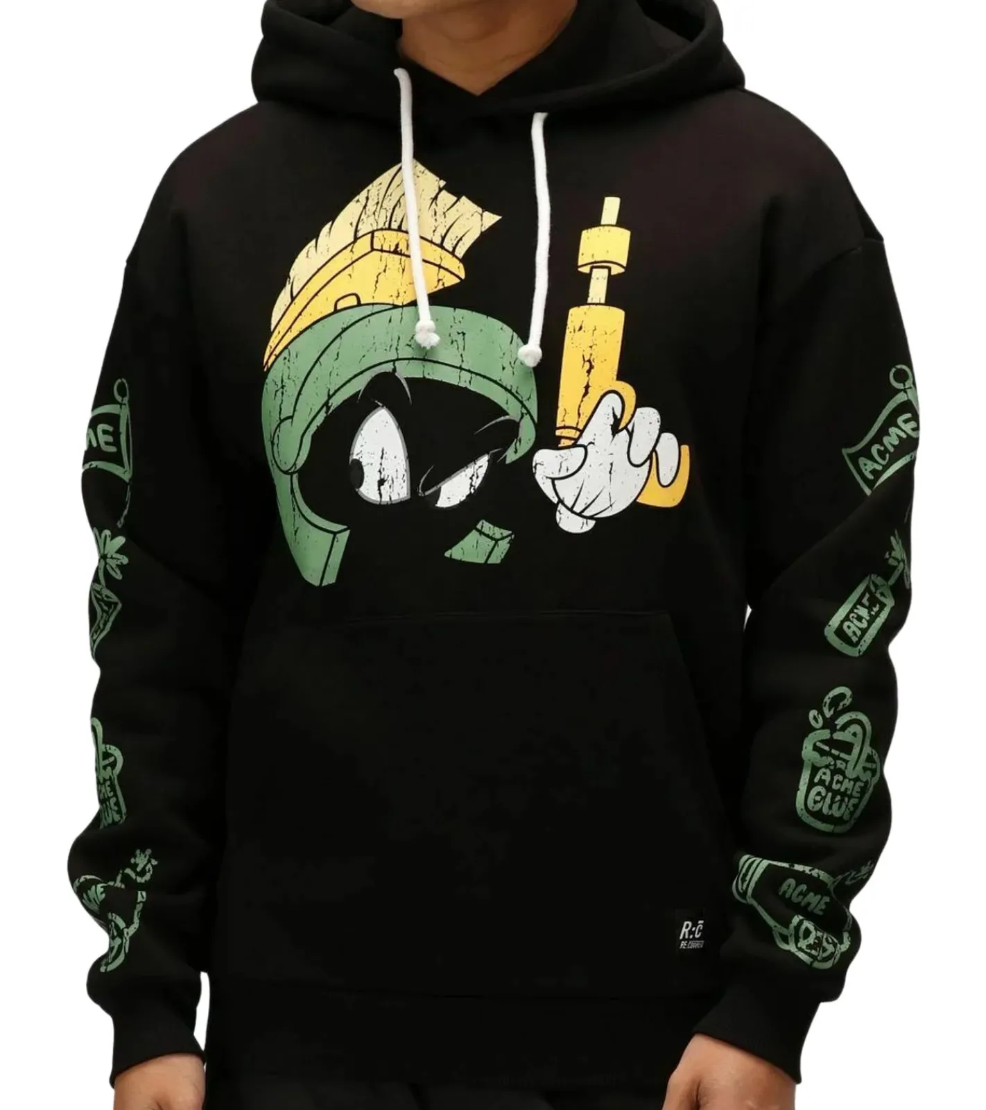 RE:COVERED X LOONEY TUNES Herren Kapuzen-Pullover mit Martian Marvin-Print Baumwoll-Hoody Langarm-Shirt RCWARN549 Schwarz