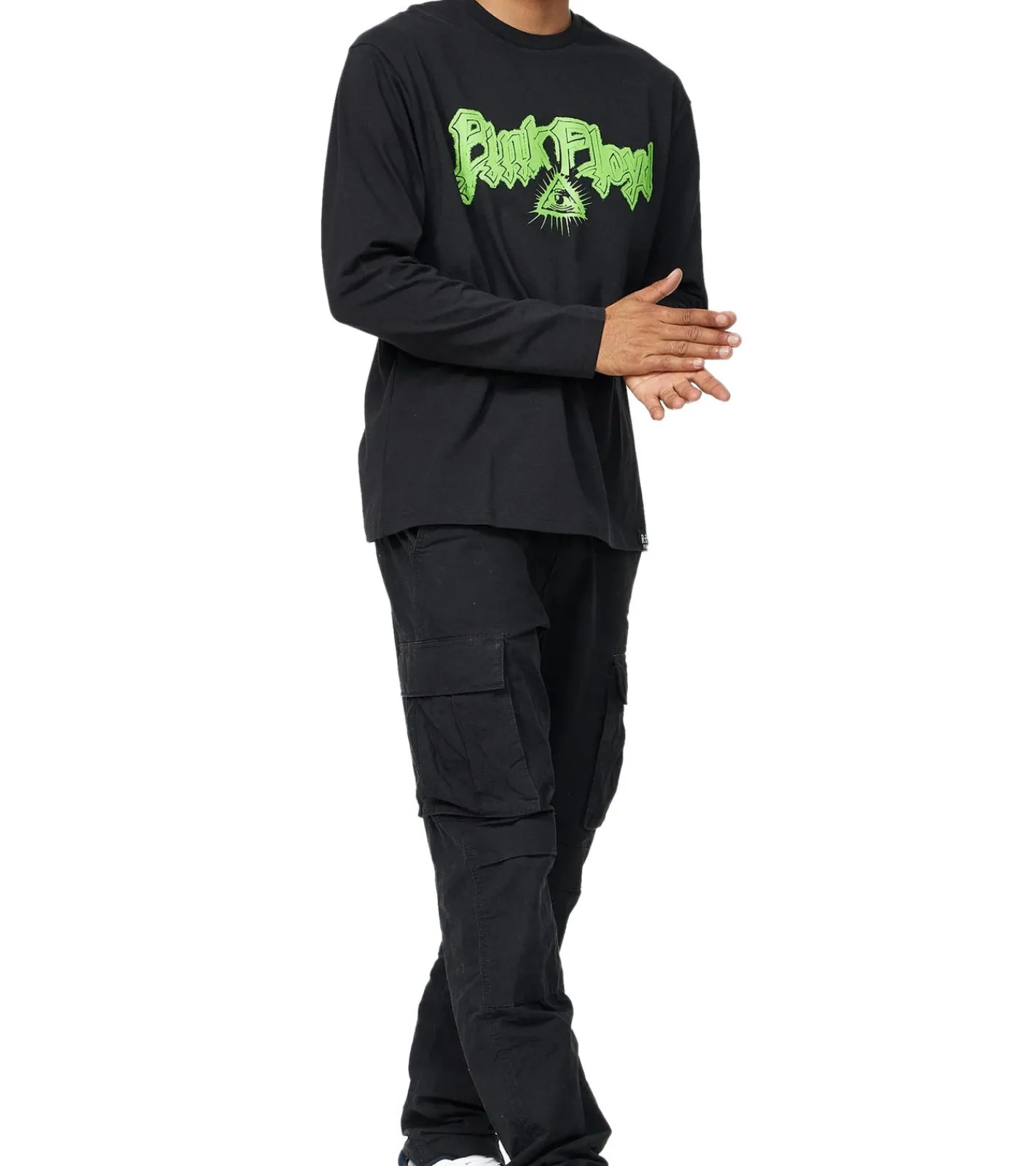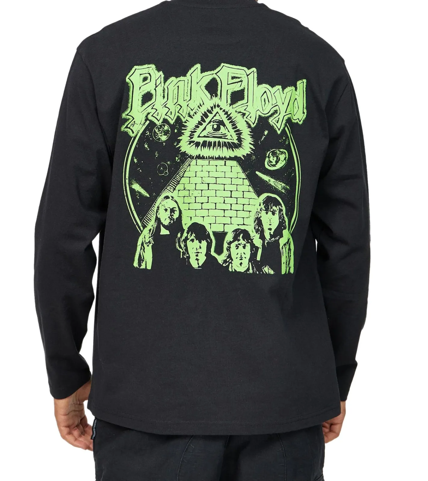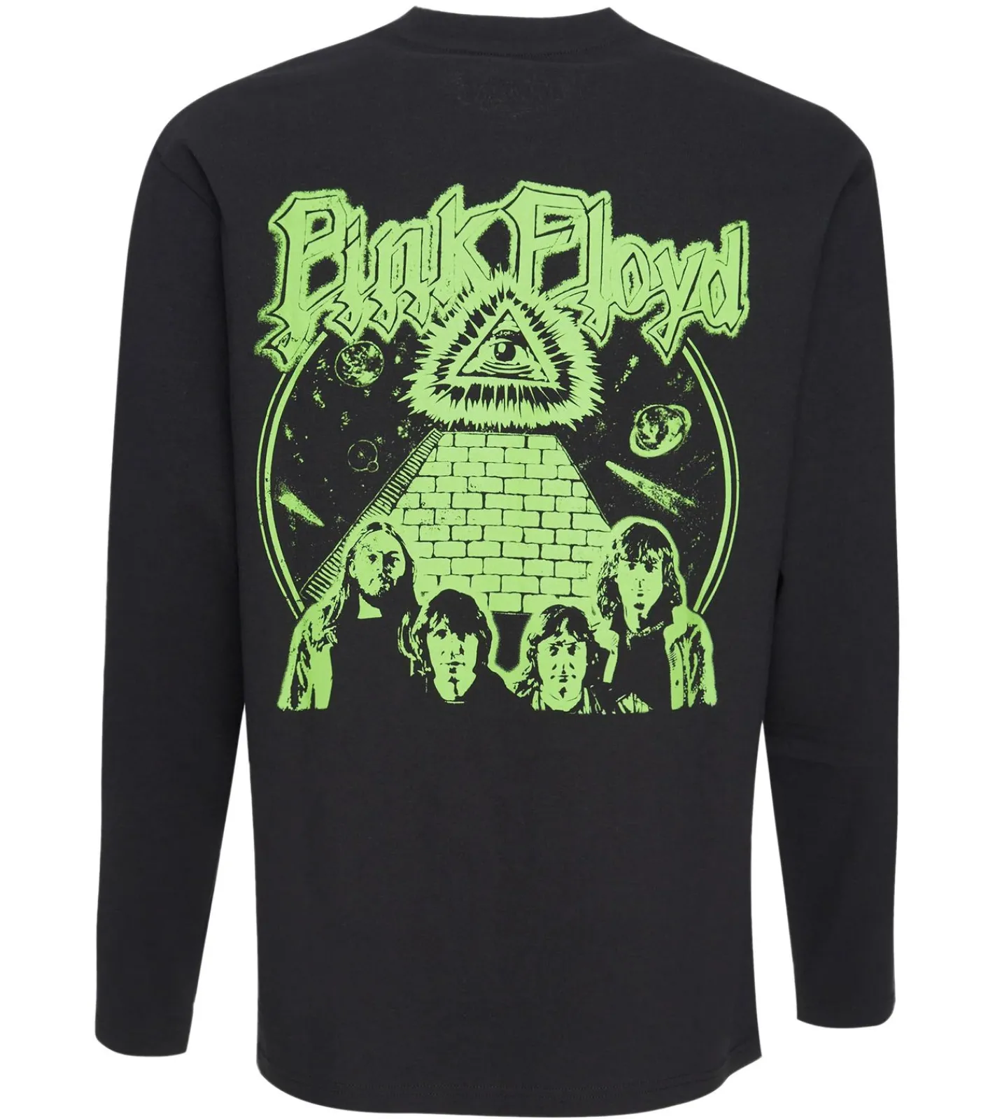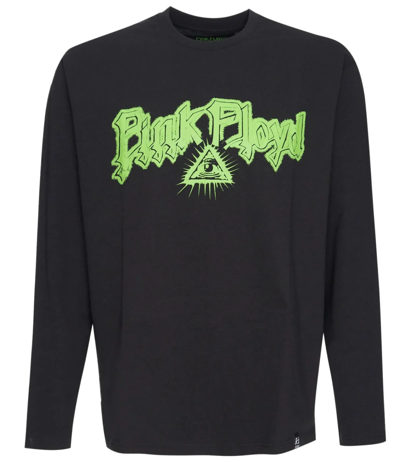 RE:COVERED X Pink Floyd Herren Langarm-Shirt mit Vibrant Green Logo-Print Baumwoll-Longsleeve Pullover MMPER774 Schwarz