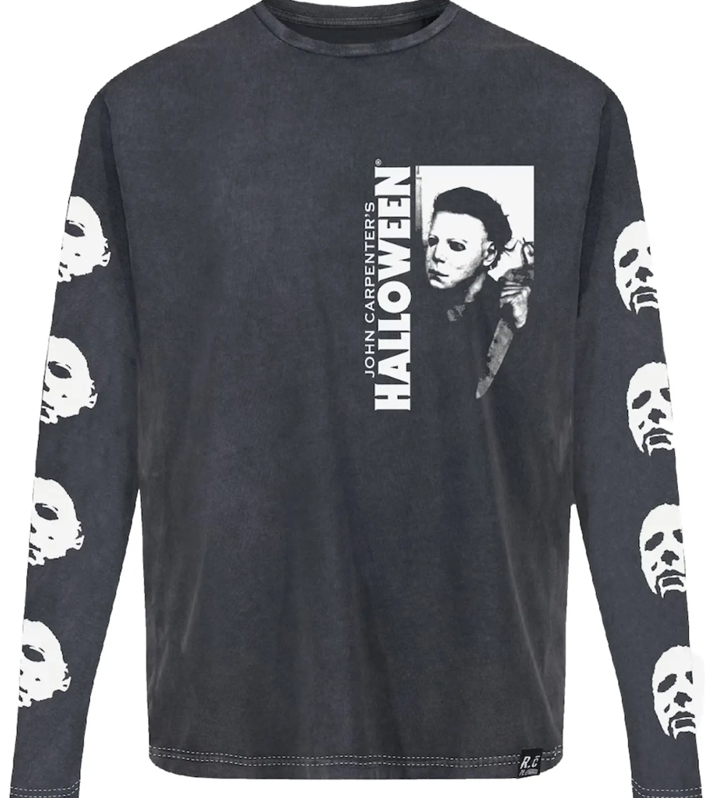 RE:COVERED X Studio Canal Halloween Herren Langarm-Shirt mit Vintage-Print Baumwoll-Longsleeve Pullover RCSTC116 verwaschenes Schwarz
