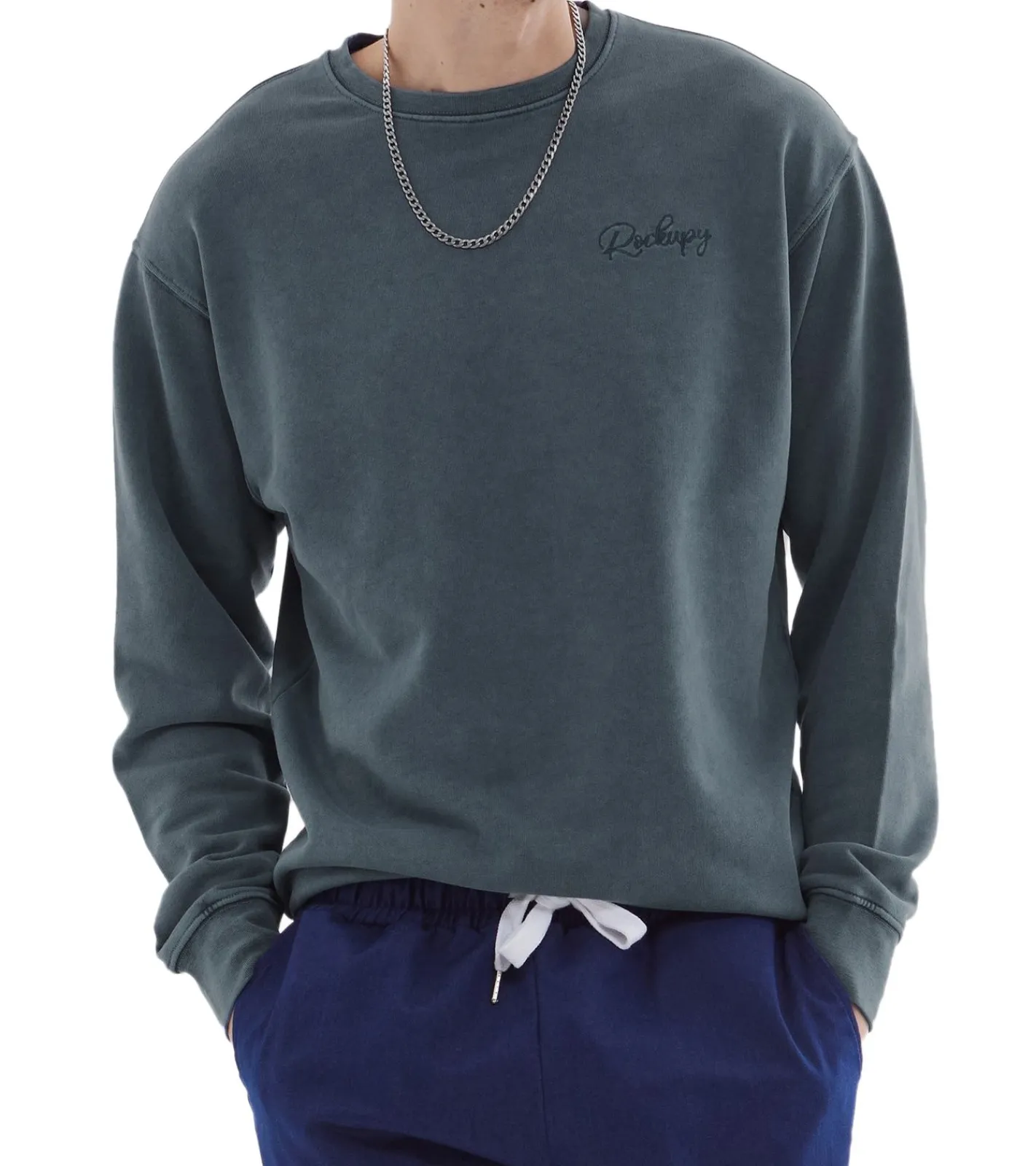 ROCKUPY Herren Sweatshirt Baumwoll-Pullover mit Logo-Stickerei Rundhals-Pulli UNI-40020 Dunkelblau, Lila, Dunkelgrün oder Grün