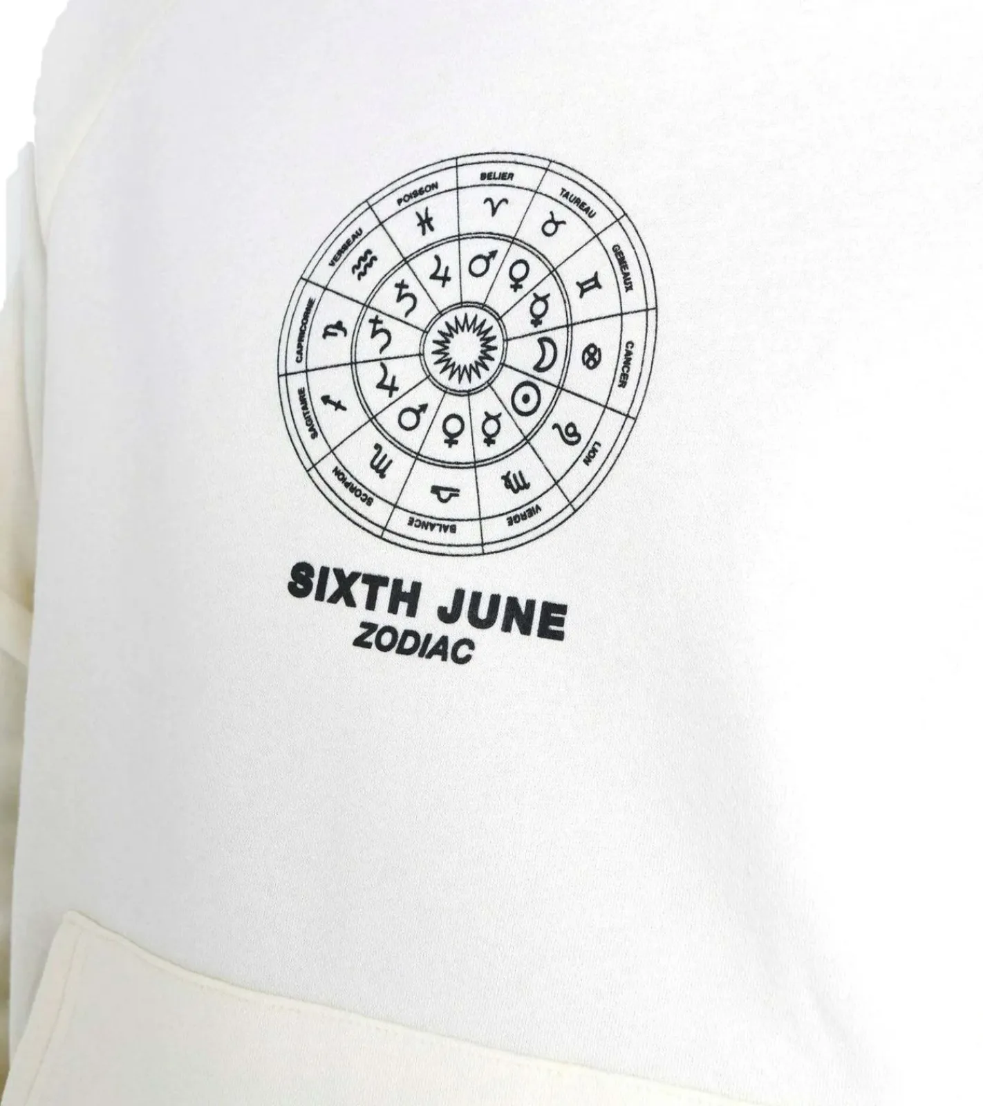 Sixth June Oversized Zodiac Signs Herren Kapuzen-Pullover Sweat-Hoodie mit Sternzeichen Print 22629 Hellbeige