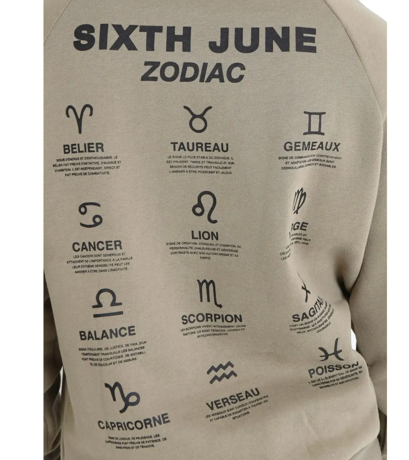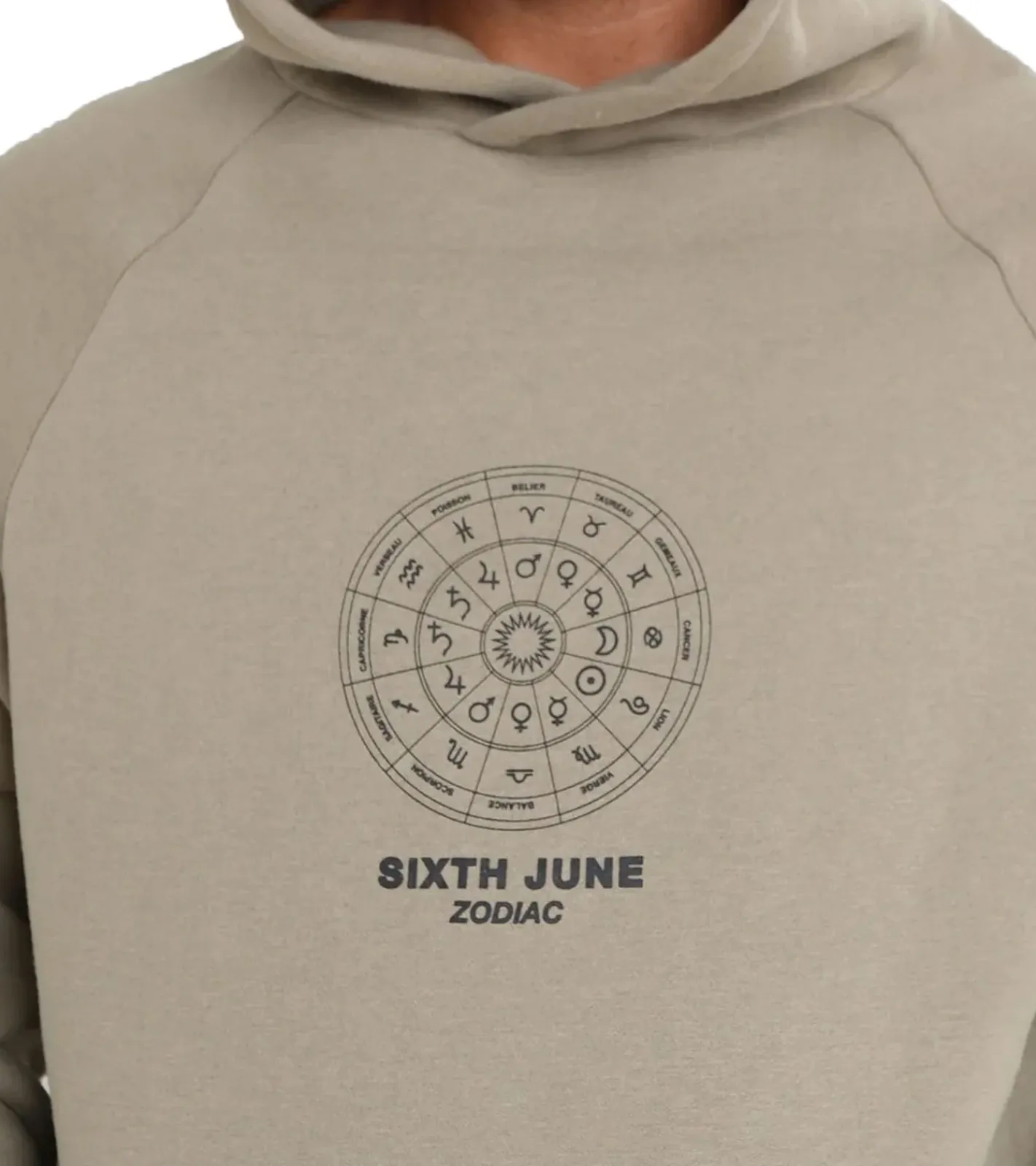 Sixth June Oversized Zodiac Signs Herren Kapuzen-Pullover Sweat-Hoodie mit Sternzeichen Print 22629 Khaki