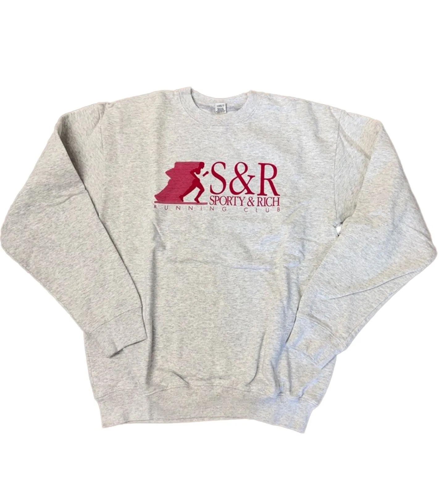 Sporty & Rich Running Club Sweatshirt mit Rundhals-Ausschnitt Grau/Rot