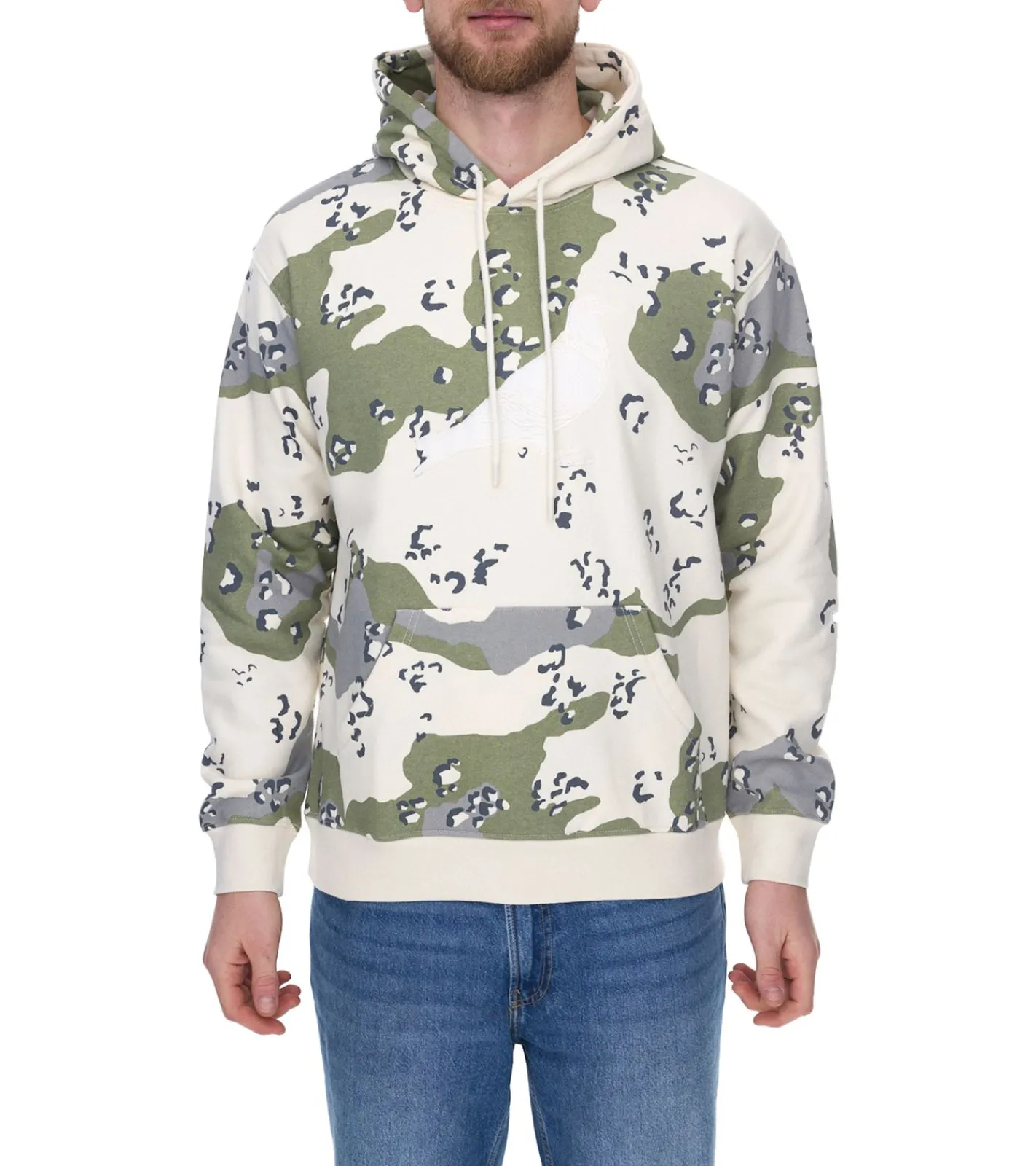 STAPLE Herren Kapuzen-Pullover mit Kängurutasche Baumwoll-Pullover mit Tauben-Frontprint Camouflage 2209H7066 Olivgrün/Beige
