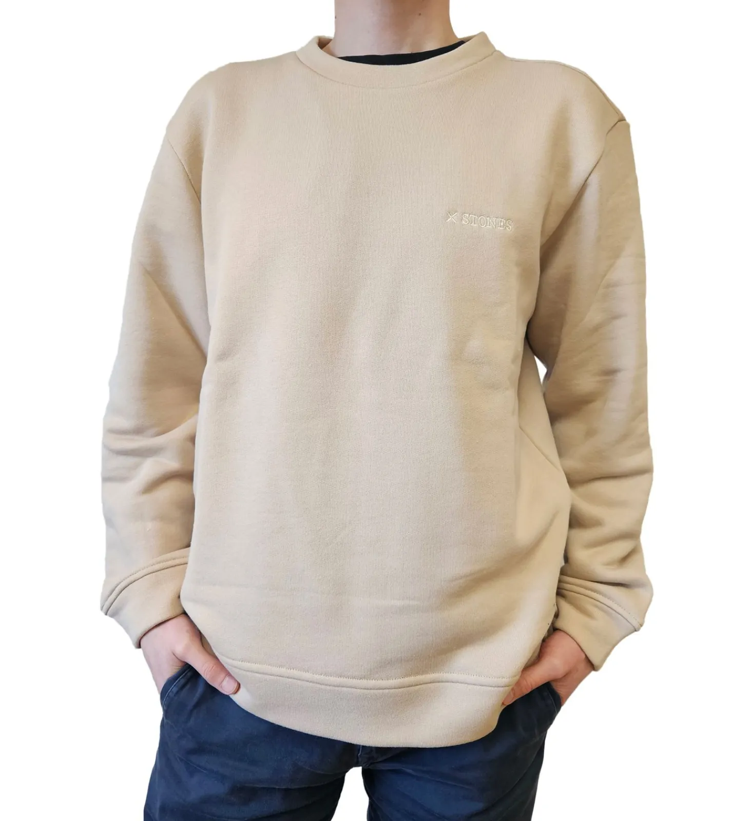 STONES Herren Basic-Pullover Sweatshirt mit Logo-Stickerei moderner Baumwoll-Sweater Langarm-Shirt Beige