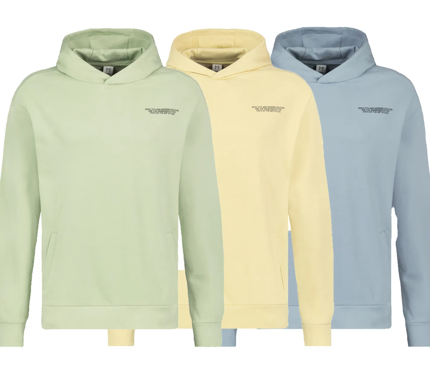SUBLEVEL Herren Kapuzen-Pullover Baumwoll-Hoodie mit Eingriffstaschen Sweater H10014T21326A Hellgrün, Blau oder Gelb