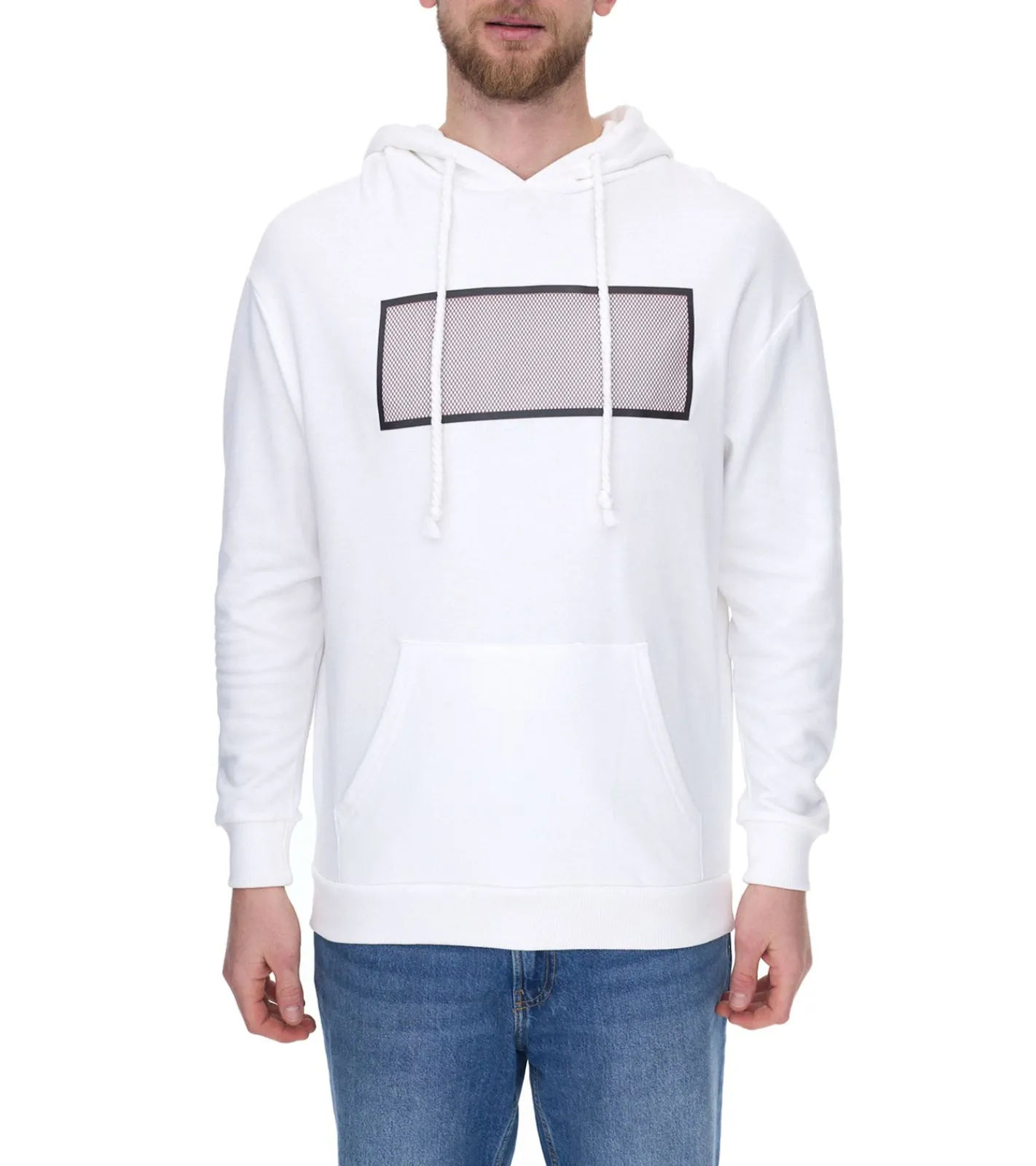 vsct Net Application Herren Hoodie mit Gitter-Print auf Brust Baumwoll Kapuzen-Pullover 5643160 Ecru/Weiß