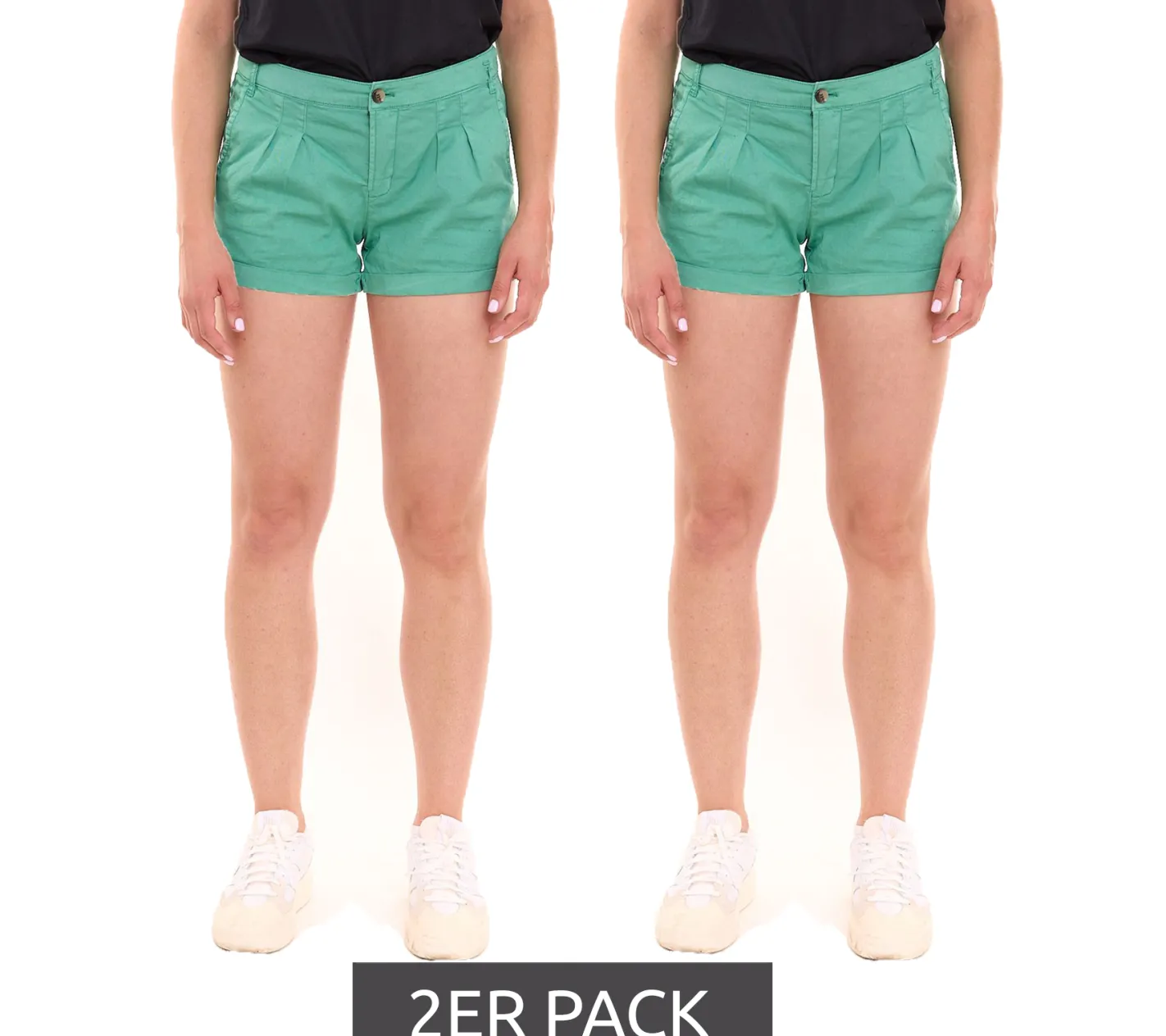 2er Sparpack AjC Damen Hot-Pants mit Bügelfalten Chino-Shorts mit fixiertem Umschlag Sommer-Shorts 83031904 Grün