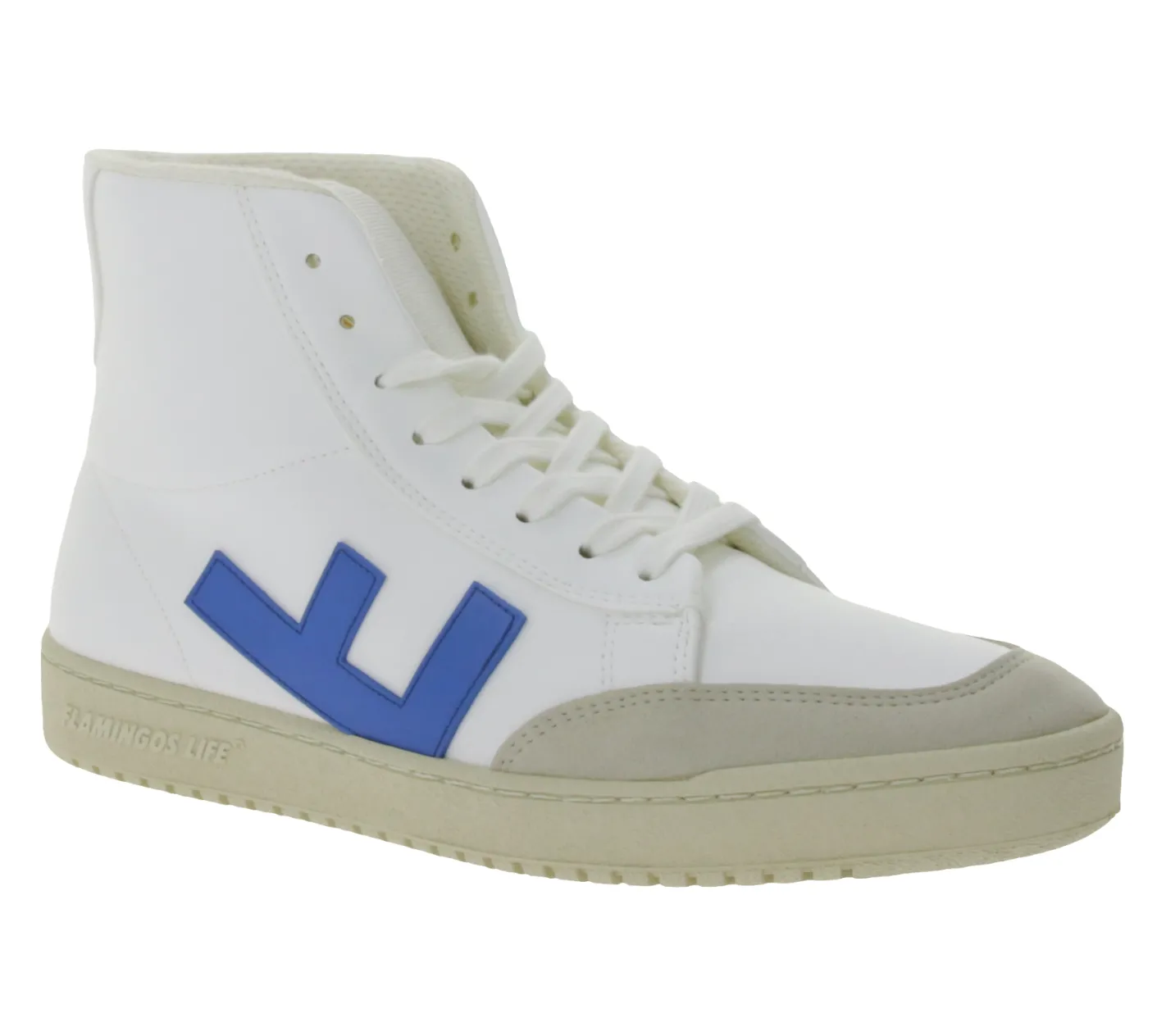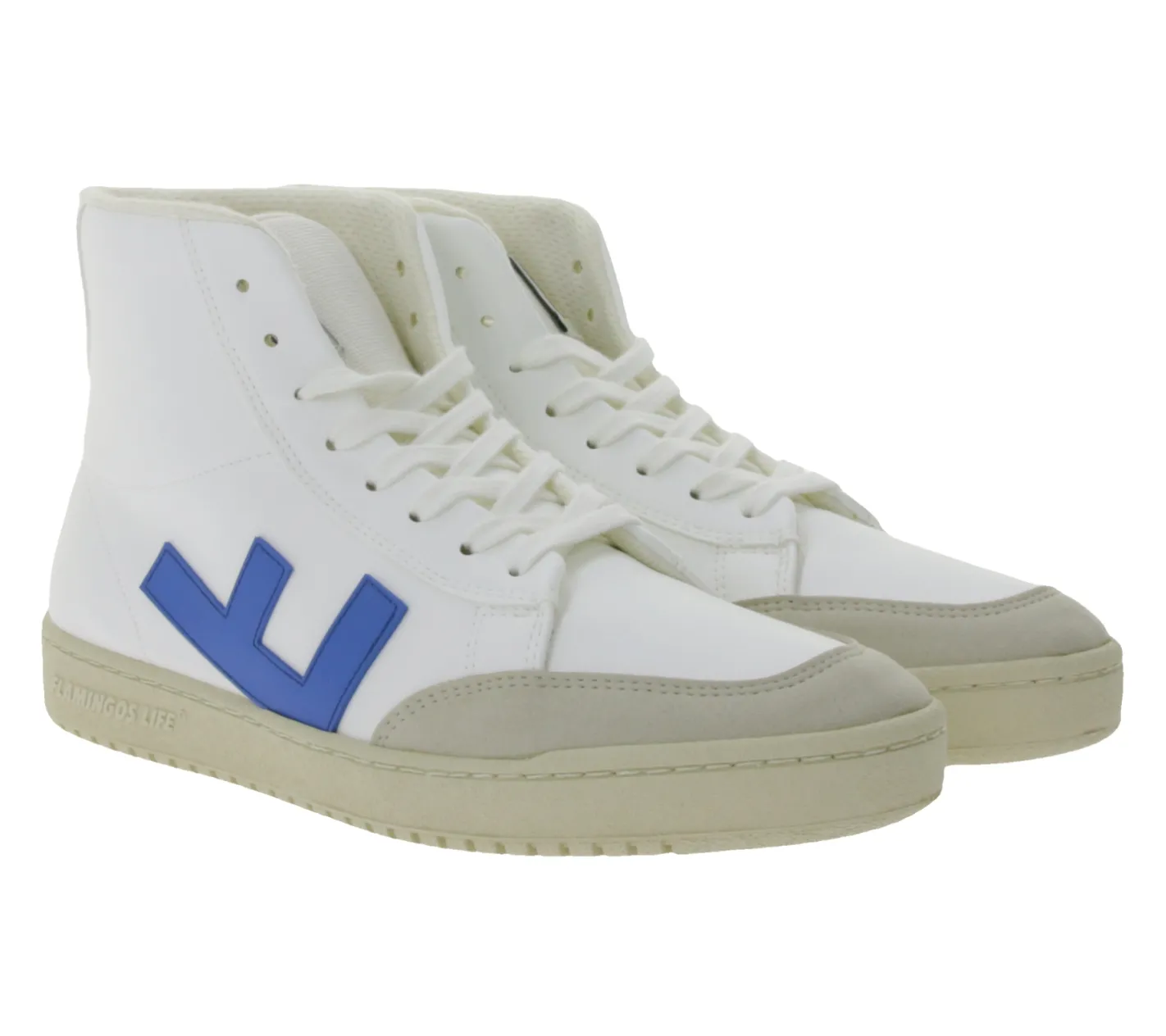 FLAMINGOS LIFE Old 80`s High-Top Sneaker faire- und vegane Freizeit-Schuhe FW2108WHIBLUMON Weiß/Blau